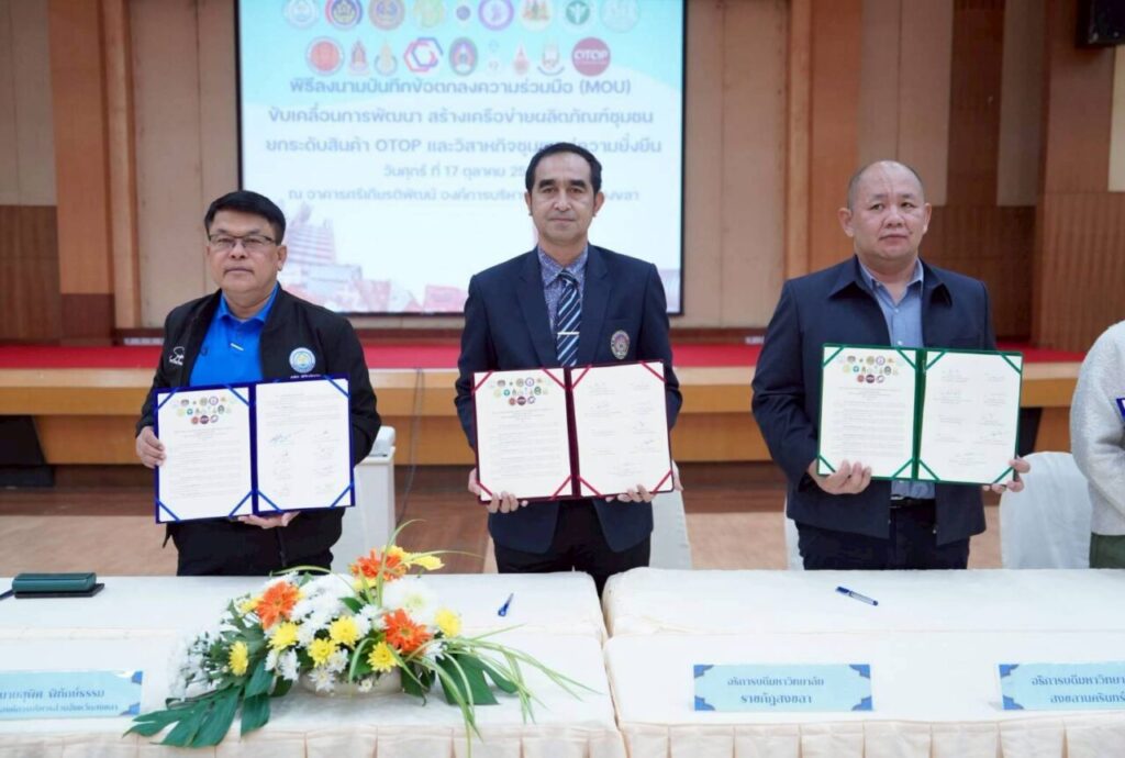 มรภ.สงขลา ลงนามความร่วมมือ อบจ.สงขลา-องค์กรพันธมิตร ขับเคลื่อนการพัฒนา สร้างเครือข่ายผลิตภัณฑ์ชุมชน ยกระดับสินค้า OTOP และวิสาหกิจชุมชนสู่ความยั่งยืน