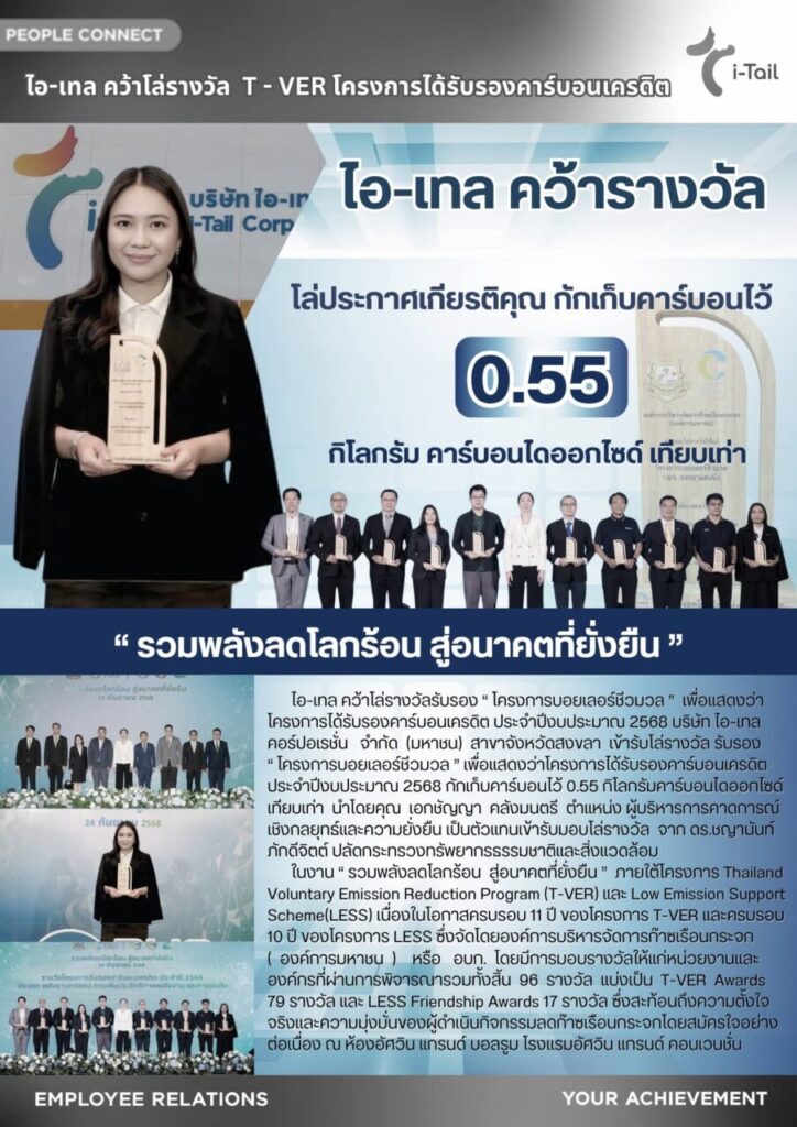 ไอ-เทล สงขลา เข้ารับโล่รางวัลรับรอง “โครงการบอยเลอร์ชีวมวล ” เพื่อแสดงว่าโครงการได้รับรองคาร์บอนเครดิต ประจำปีงบประมาณ 2568