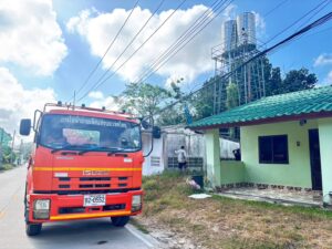 กฟผ. โรงไฟฟ้าจะนะ นำรถน้ำช่วยดับเพลิงไหม้ หมู่ 1 ตำบลจะโหนง อำเภอจะนะ จังหวัดสงขลา