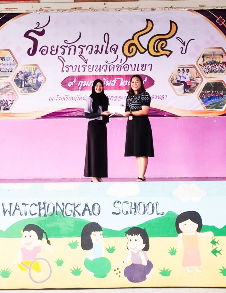 วันที่ 9 กุมภาพันธ์ 2569 นางสาวเกตุวลี สามสี พนักงานวิชาชีพระดับ 6 แผนกประชาสัมพันธ์และชุมชนสัมพันธ์โรงไฟฟ้าจะนะ พร้อมด้วยผู้ปฏิบัติงานโรงไฟฟ้าจะนะ ร่วมกิจกรรมร้อยรักรวมใจ 94 ปี โรงเรียนวัดช่อง ตำบลคลองเปียะ อำเภอจะนะ จังหวัดสงขลา โดยมีนายนิคม สีนุ้ย กำนันตำบลคลองเปียะเป็นประธานในกิจกรรมครั้งนี้ ซึ่งในวันนี้โรงไฟฟ้าจะนะร่วมมอบทุนการศึกษาสำหรับปีการศึกษา 2568 และรับเกียรติบัตรผู้สนับสนุนกิจกรรมด้วยดีตลอดมา