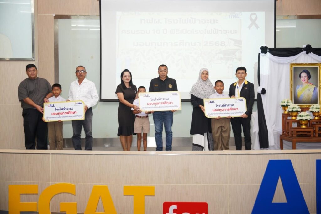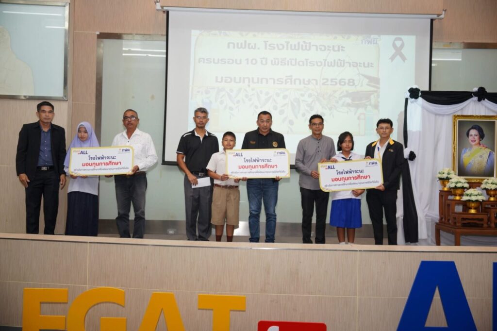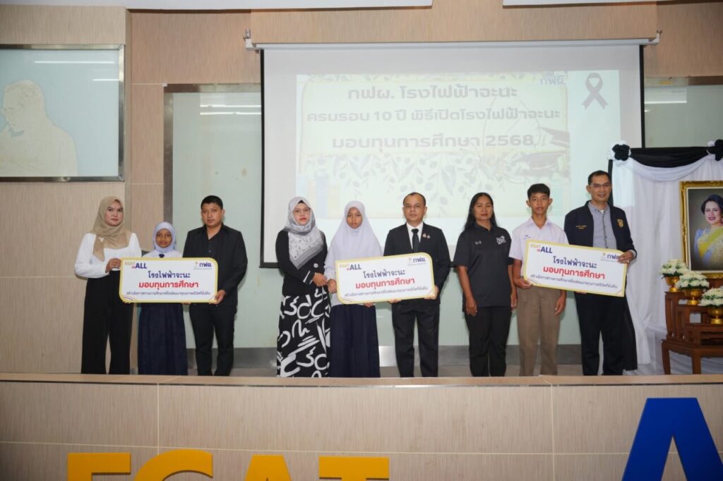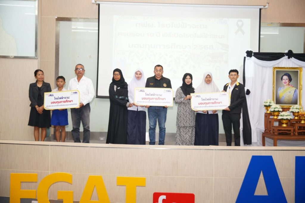 วันศุกร์ที่ 7 พฤศจิกายน 2568 โรงไฟฟ้าจะนะ จัดกิจกรรมงานครบรอบ 10 ปี พิธีเปิดโรงไฟฟ้าจะนะ โดยมีวัตถุประสงค์เพื่อระลึกถึงสมเด็จพระกนิษฐาธิราชเจ้า กรมสมเด็จพระเทพรัตนราชสุดาฯ สยามบรมราชกุมารีเสด็จในการเปิดโรงไฟฟ้าจะนะอย่างเป็นทางการ เมื่อวันจันทร์ที่ 9 พฤศจิกายน 2558 ซึ่งมีกิจกรรมทางศาสนา พิธีสักการะพระภูมิเจ้าที่และศาลตายาย พิธีทางศาสนาทั้งไทย – พุทธ และไทย – มุสลิม ณ อาคารประชาสัมพันธ์ โรงไฟฟ้าจะนะ นอกจากนี้ยังจัดกิจกรรมมอบทุนการศึกษาประจำปี 2568 โดยมี นายประภาส หมีดเส็น นายอำเภอจะนะ เป็นประธานในพิธี และนายชนาธิป ชิตพงศ์ ผู้ช่วยผู้อำนวยการโรงไฟฟ้าจะนะ กล่าวต้อนรับ โดยมีหัวหน้าส่วนราชการ หัวหน้าหน่วยงานท้องที่ ผู้นำชุมชน และผู้ปฏิบัติงานโรงไฟฟ้าจะนะเข้าร่วมกิจกรรมในครั้งนี้ ซึ่งทุนการศึกษานี้มอบให้แก่เด็กนักเรียนในพื้นที่รอบโรงไฟฟ้าจะนะ จำนวน 55 โรงเรียน รวม 291 ทุน ซึ่งกิจกรรมดังกล่าวได้ดำเนินการจัดมาอย่างต่อเนื่องตั้งแต่ระยะเริ่มการก่อสร้างโรงไฟฟ้าจะนะ เพื่อเป็นการสร้างโอกาส และสนับสนุนการเรียนรู้ของเด็กและเยาวชนในพื้นที่อำเภอจะนะ ให้สามารถศึกษาต่อในระดับชั้นที่สูงขึ้น และนำความรู้ไปพัฒนาคุณภาพชีวิตต่อไป โดยก่อนการเริ่มกิจกรรมในวันนี้ ทาง กฟผ. โรงไฟฟ้าจะนะ ได้จัดพิธีถวายอาลัยแด่ สมเด็จพระนางเจ้าสิริกิติ์ พระบรมราชินีนาถ พระบรมราชชนนีพันปีหลวง ด้วยสำนึกในพระมหากรุณาธิคุณอันหาที่สุดมิได้