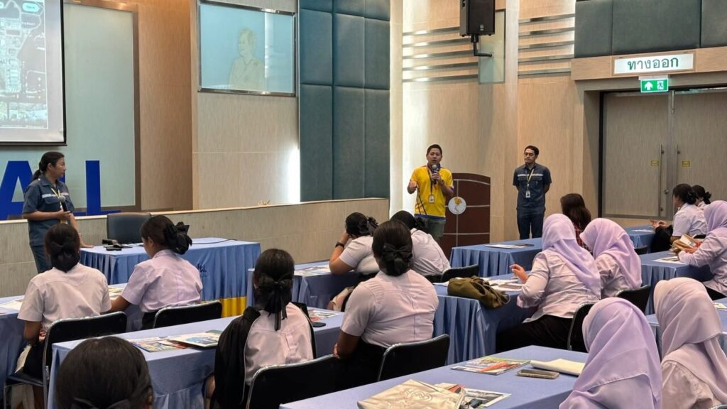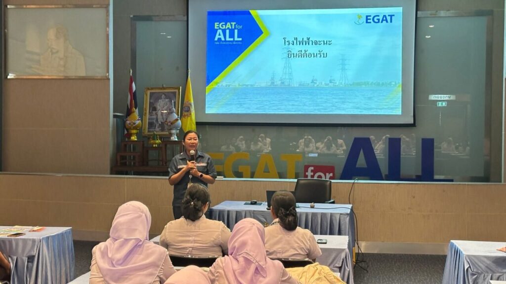 วันที่ 21 ตุลาคม 2568 โรงไฟฟ้าจะนะให้การต้อนรับคณะศึกษาดูงานจากคณะวิทยาศาสตร์และเทคโนโลยี หลักสูตรสาธารณสุขศาสตรบัณฑิต สาขาวิชาสาธารณสุขชุมชน มหาวิทยาลัยราชภัฏสงขลา ที่มาศึกษาดูงานเรื่องการประเมินผลกระทบทางสิ่งแวดล้อม โดยมีนางสาวศิริณา ถาวรวิสิทธิ์หัวหน้าสิ่งแวดล้อม เป็นวิทยากรบรรยาย ร่วมด้วยนายทรงวุฒิ เกลี้ยงสง หัวหน้าแผนกความปลอดภัย อาชีวอนามัย และสภาพแวดล้อมในการทำงาน และนายจิตวัต วงศ์วาสนา หัวหน้าแผนกประชาสัมพันธ์และชุมชนสัมพันธ์โรงไฟฟ้าจะนะ ร่วมต้อนรับและตอบข้อซักถาม หลังจากนั้น คณะฯได้เข้าเยี่ยมชมศูนย์การเรียนรู้ กฟผ. จะนะ ตามลำดับ