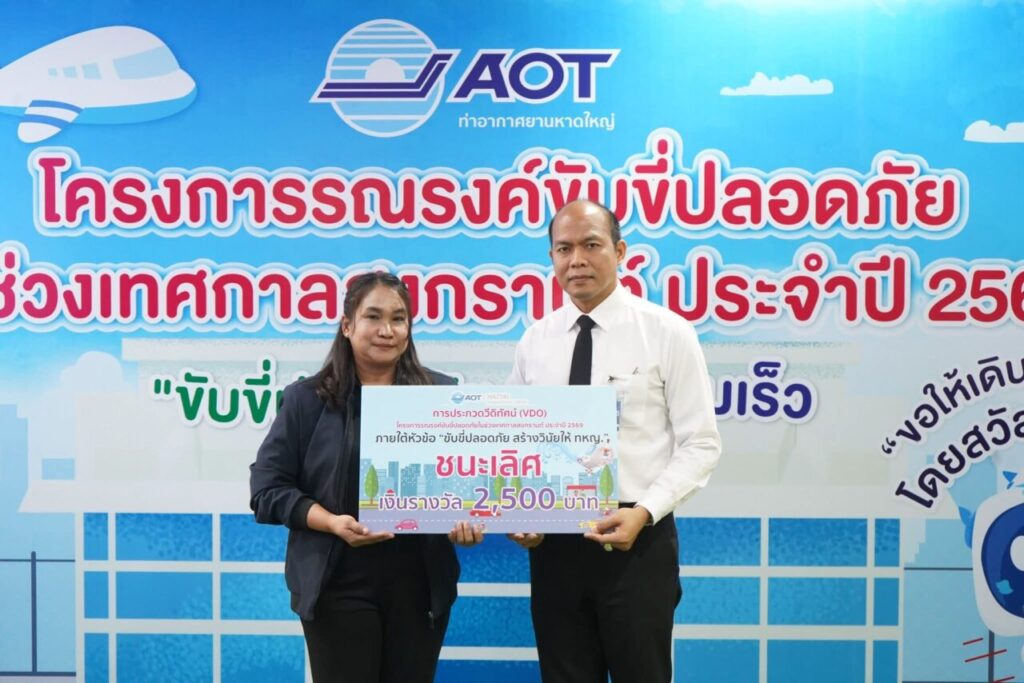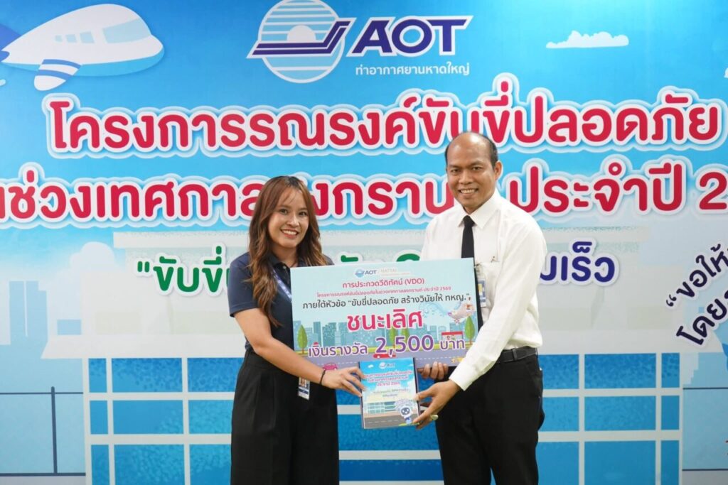 วันที่ 2 เมษายน 2569 (เวลา14.00 น.) นายกฤษฎา พุกะทรัพย์ ผู้อำนวยการท่าอากาศยานหาดใหญ่ (ผหญ.) เป็นประธานเปิดโครงการรณรงค์ขับขี่ปลอดภัยในช่วงเทศกาลสงกรานต์ ประจำปี 2569 พร้อมด้วยผู้บริหาร พนักงานและลูกจ้างท่าอากาศยานหาดใหญ่ ส่วนราชการ สายการบิน ผู้ประกอบการร้านค้าภายใน ทหญ. ชมรมจิตอาสาสร้างวินัยและวัฒนธรรมความปลอดภัย (Safety Culture) ณ ทหญ. ผู้โดยสารและผู้ใช้บริการท่าอากาศยานหาดใหญ่ เข้าร่วมโครงการฯ ณ อาคารผู้โดยสารท่าอากาศยานหาดใหญ่ โดยมีการให้ความรู้เกี่ยวกับการขับขี่ปลอดภัย ร่วมสนุกบนเวที การเล่นเกมส์ชิงรางวัล และมอบรางวัลผู้ชนะการประกวดวีดิทัศน์ (VDO) พร้อมมีการรณรงค์แจกแผ่นพับให้กับผู้ขับขี่รถยนต์บริเวณหน้าอาคารผู้โดยสาร ทหญ. เพื่อผู้เข้าร่วมโครงการจะได้รับความรู้ความเข้าใจ และตระหนักถึงความปลอดภัยในการใช้รถใช้ถนนสำหรับการเดินทางช่วงเทศกาลสงกรานต์ มีจิตสำนึกที่ดีอันจะนำไปสู่การสร้างวัฒนธรรมความปลอดภัย