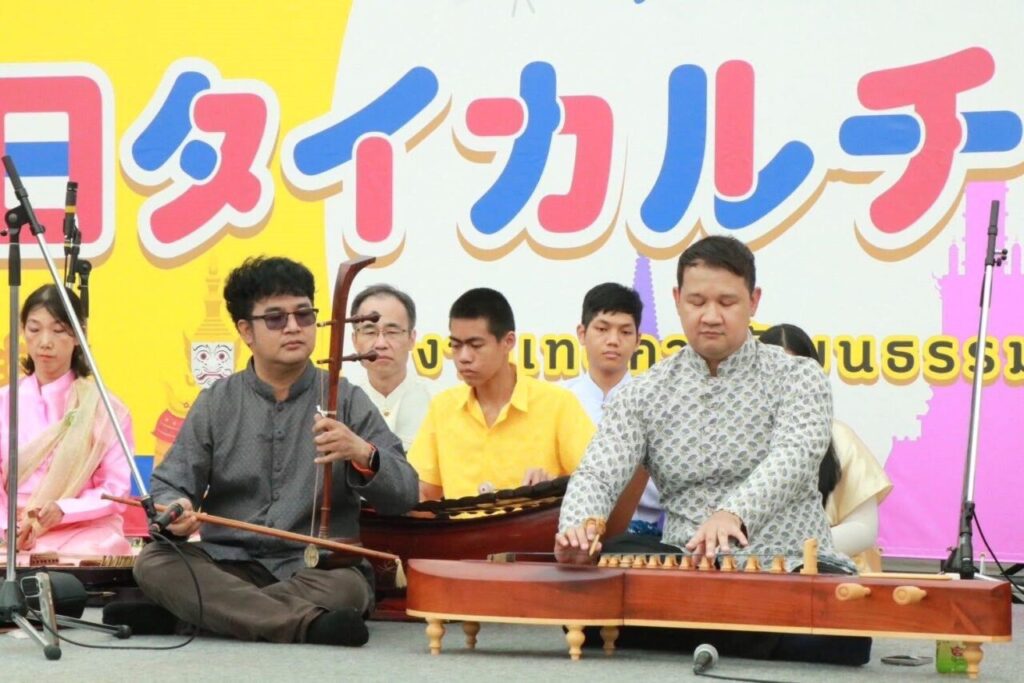 เมื่อวันที่ 18-19 ตุลาคม 2568 อาจารย์ ดร.สกลพัฒน์ โคตรตันติ รองคณบดีฝ่ายพัฒนานักศึกษาและทะนุบำรุงศิลปะและวัฒนธรรม และ ผศ.ดร.รัชวิช มุสิการุณ ประธานสาขาวิชาดนตรีไทยและดนตรีพื้นบ้าน คณะศิลปกรรมศาสตร์ มหาวิทยาลัยราชภัฏสงขลา (มรภ.สงขลา) ร่วมนำเสนอศิลปวัฒนธรรมไทยในเวทีนานาชาติ ณ สวนอุเมะโคจิ เมืองเกียวโต ประเทศญี่ปุ่น จัดโดย สมาคมไทย-ญี่ปุ่น ซึ่ง มรภ.สงขลา และ สำนักศิลปะและวัฒนธรรม มหาวิทยาลัยราชภัฏสุราษฎร์ธานี (มรส.) ได้รับเชิญให้เป็นตัวแทนสถาบันการศึกษาของประเทศไทย เดินทางไปร่วมแลกเปลี่ยนเรียนรู้และเผยแพร่ศิลปวัฒนธรรมในระดับนานาชาติ ในงานวัฒนธรรมญี่ปุ่น-ไทย ณ นครเกียวโต ในครั้งนี้