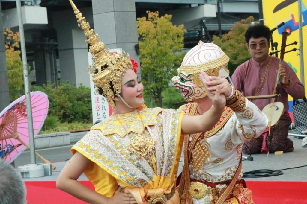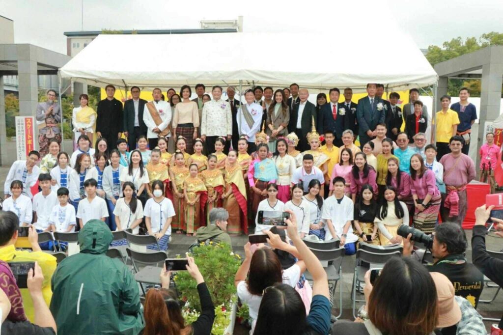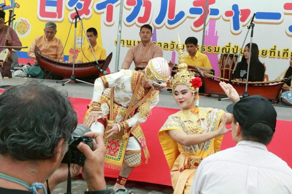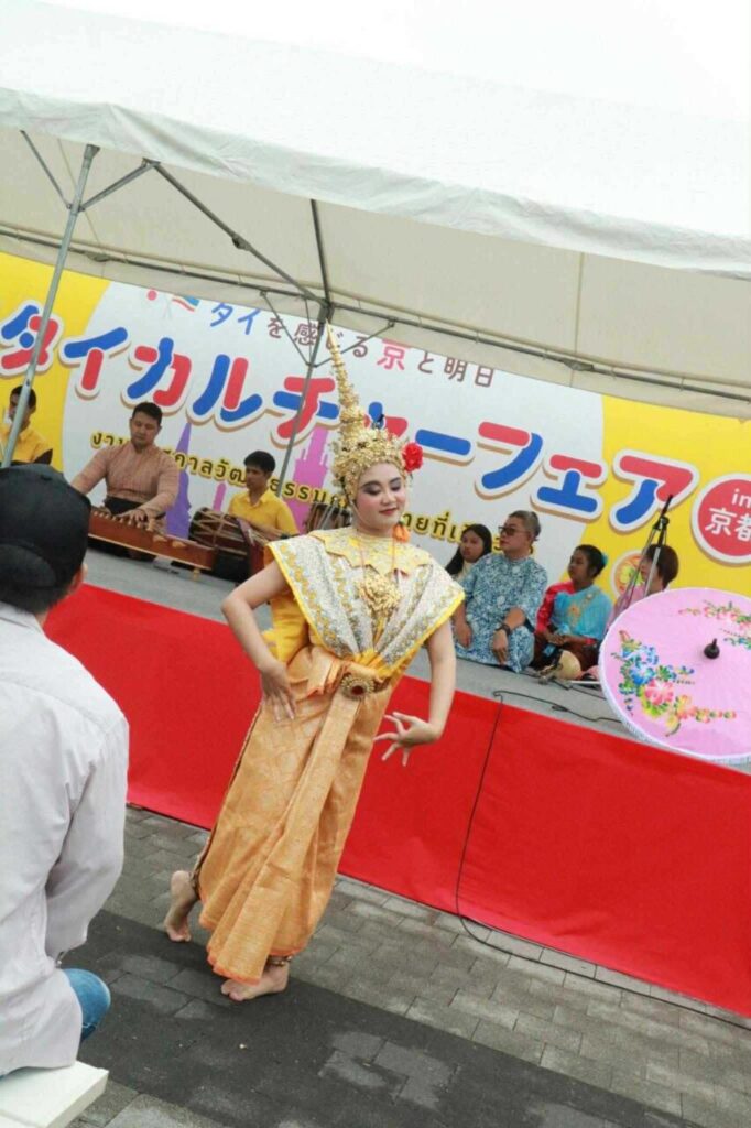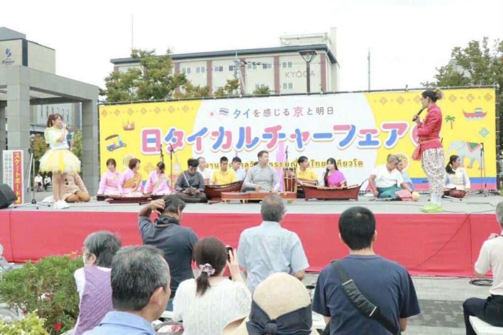 โดยมีท่านผู้ทรงคุณวุฒิของเมืองร่วมเป็นประธานในพิธีเปิด ได้แก่ 1. นายอัครพงศ์ เฉลิมนนท์ กงสุลใหญ่ ณ นครโอซากา 2. นายชิเกโยะ คิมูระ ประธานสมาคมแลกเปลี่ยนการศึกษาญี่ปุ่น-ไทย 3. นายยาสุชิ มิซาวะ ผู้ว่าราชการจังหวัดเกียวโต โอกาสนี้ คณะศิลปกรรมศาสตร์ มรภ.สงขลา และสำนักศิลปะและวัฒนธรรม มรส. ได้นำการแสดงศิลปวัฒนธรรมไทย ซึ่งประกอบด้วย การแสดงโนรา เพลงพม่ากลองยาว การบรรเลงเพลงหนุมานจับนางสุพรรณมัจฉา และ การแสดงดนตรีไทย ไปเผยแพร่ภายในงาน ซึ่งได้รับเสียงชื่นชมและการปรบมือจากผู้เข้าร่วมงานทั้งชาวญี่ปุ่นและชาวต่างชาติเป็นอย่างมาก สะท้อนให้เห็นถึงความงดงามและคุณค่าของศิลปวัฒนธรรมไทยที่สามารถสร้างความประทับใจในระดับนานาชาติได้เป็นอย่างดี อาจารย์ ดร.สกลพัฒน์ โคตรตันติ กล่าวถึงความรู้สึกต่อการเข้าร่วมกิจกรรมดังกล่าวว่า คณะศิลปกรรมศาสตร์ มรภ.สงขลา โดยเฉพาะสาขาวิชาดนตรีไทยและดนตรีพื้นบ้าน รู้สึกเป็นเกียรติอย่างยิ่งที่ได้รับการเชิญให้ร่วมแสดงดนตรีไทยและนาฏศิลป์ไทยในงานวัฒนธรรมญี่ปุ่น-ไทย ที่กรุงเกียวโตในครั้งนี้ ซึ่งทางคณะฯ ของเราได้รับเกียรติให้ไปร่วมแสดงดนตรีไทยเป็นครั้งที่ 2 แล้ว และได้รับการตอบรับอย่างดีจากประชาชนในญี่ปุ่น ซึ่งนอกจากภายในงานจะมีการแสดงดนตรีไทยและนาฏศิลป์ไทยแล้ว ยังมีการออกบูทจำหน่ายอาหารและผลิตภัณฑ์ต่าง ๆ จากประเทศไทย โดยตนได้นำเอาผลิตภัณฑ์ผ้ามัดย้อมและเขียนเทียนลายแลนด์มาร์คของจังหวัดสงขลา ซึ่งเป็นผลงานของอาจารย์ในสาขาวิชาการออกแบบไปร่วมแสดงและจัดจำหน่ายด้วย จึงเป็นโอกาสสำคัญที่จะได้นำเอาวัฒนธรรมพื้นถิ่นจังหวัดสงขลาของเรา ซึ่งถือเป็น soft power ที่สำคัญไปแสดงในระดับนานาชาติ ทั้งนี้ การเข้าร่วมกิจกรรมดังกล่าวสอดคล้องกับเป้าหมายการพัฒนาที่ยั่งยืน (Sustainable Development Goals : SDGs) เป้าหมายที่ 4 สร้างหลักประกันว่าทุกคนมีการศึกษาที่มีคุณภาพอย่างครอบคลุมและเท่าเทียม และสนับสนุนโอกาสในการเรียนรู้ตลอดชีวิต และ เป้าหมายที่ 17 เสริมความเข้มแข็งให้แก่กลไกการดำเนินงานและฟื้นฟูสภาพหุ้นส่วนความร่วมมือระดับโลกสำหรับการพัฒนาที่ยั่งยืน