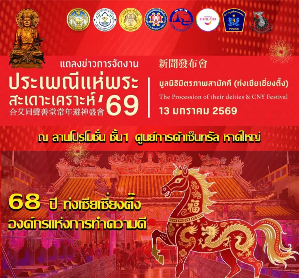 “ท่งเซียเซี่ยงตึ๊ง” จัดแถลงข่าว “ประเพณีแห่พระสะเดาะเคราะห์ ประจำปี 2569″เพื่อกระตุ้นและส่งเสริมการท่องเที่ยวในพื้นที่อำเภอหาดใหญ่