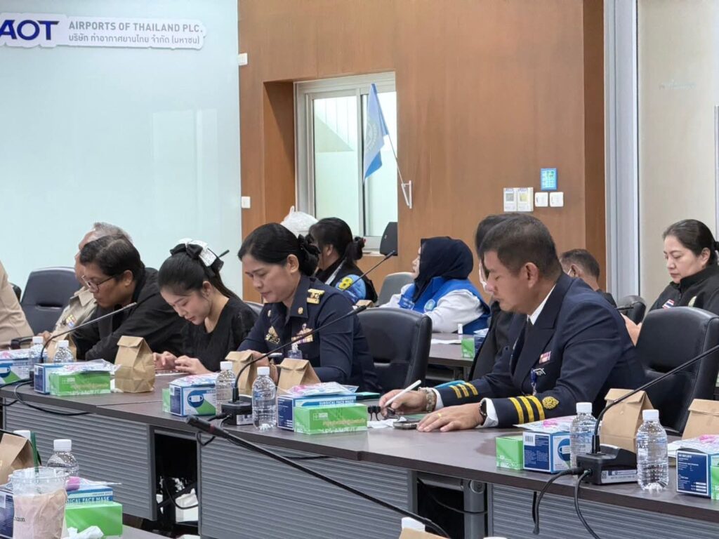 วันที่ 16 ธันวาคม 2568 (เวลา 09.00 น.) เรืออากาศเอกชัยยงค์ หลำพรม รองผู้อำนวยการท่าอากาศยานหาดใหญ่ (ด้านปฏิบัติการและบำรุงรักษา) (รหญ. (ปร.)) เป็นประธานในการประชุมคณะทำงานประจำช่องทางเข้าออกประจำด่านควบคุมโรคติดต่อระหว่างประเทศ ท่าอากาศยานหาดใหญ่ ครั้งที่ 1/2569 เพื่อขับเคลื่อนการดำเนินงานให้เป็นไปตามวัตถุประสงค์ของพระราชบัญญัติโรคติดต่อ พ.ศ.2558 ในการเฝ้าระวัง ป้องกันและควบคุมโรคติดต่อให้เป็นไปด้วยความเรียบร้อยและมีประสิทธิภาพ โดยมีคณะทำงานฯ จำนวน 23 หน่วยงาน ประกอบด้วยส่วนราชการ สายการบิน และผู้บริหารพนักงานท่าอากาศยานหาดใหญ่ เข้าร่วมประชุม ณ ห้องประชุม 1 อาคารสำนักงานท่าอากาศยานหาดใหญ่