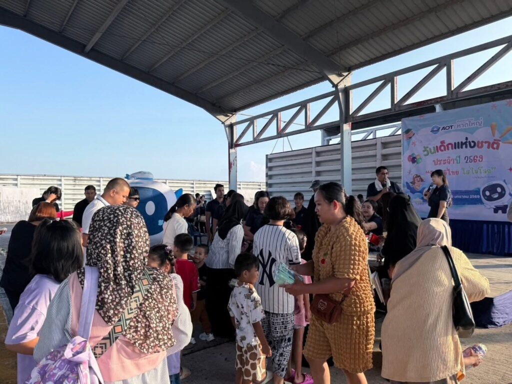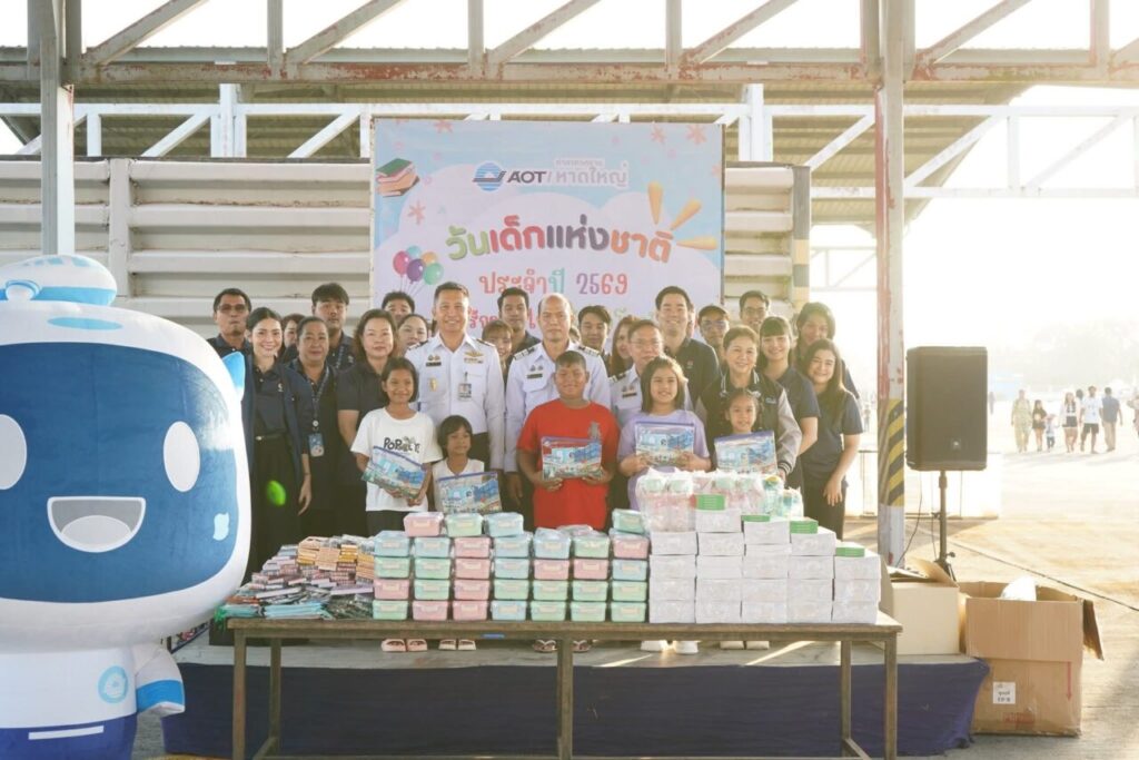 ท่าอากาศยานหาดใหญ่ นำโดย นายกฤษฎา พุกะทรัพย์ ผู้อำนวยการท่าอากาศยานหาดใหญ่ (ผหญ.) พร้อมด้วย ผู้บริหารและพนักงานท่าอากาศยานหาดใหญ่ ร่วมจัดกิจกรรม “วันเด็กแห่งชาติ” ประจำปี 2569 ร่วมกับ กองบิน 56 โดยมี นาวาอากาศเอก ณัฏปภัสร์ พุทธินนทนะวงษ์ ผู้บังคับการกองบิน 56 เป็นประธานในการจัดกิจกรรม พร้อมด้วยหน่วยงานต่างๆ เข้าร่วมจัดกิจกรรม ณ ลานจอดอากาศยานฝูงบิน 561 กองบิน 56 อำเภอคลองหอยโข่ง จังหวัดสงขลา ซึ่งท่าอากาศยานหาดใหญ่ได้มีการจัดกิจกรรมให้เด็ก ๆ และได้ร่วมมอบของขวัญในกิจกรรม เพื่อแสดงถึงความตระหนักในความสำคัญของเด็กและเยาวชน ที่จะเป็นกำลังสำคัญในการพัฒนาชาติบ้านเมือง และเป็นทรัพยากรบุคคลที่ทรงคุณค่าต่อไปในอนาคต ท่าอากาศยานหาดใหญ่ (ทหญ.) ดำเนินงานด้านความรับผิดชอบต่อสังคมและการพัฒนาที่ยั่งยืนภายใต้แนวคิด “การเป็นสนามบินที่เป็นพลเมืองที่ดีของสังคมและเป็นเพื่อนบ้านที่ดีของชุมชน” (Corporate Citizenship Airport)
