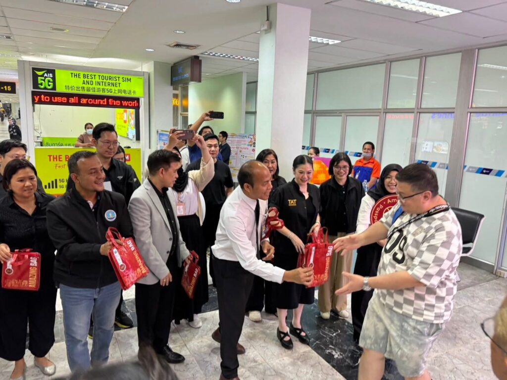 นายกฤษฎา พุกะทรัพย์ ผู้อำนวยการท่าอากาศยานหาดใหญ่ (ผหญ.) ร่วมกิจกรรมต้อนรับและมอบของที่ระลึกแก่นักท่องเที่ยวต่างชาติภายใต้โครงการ Amazing Thailand Passport Privileges @ HAT YAI