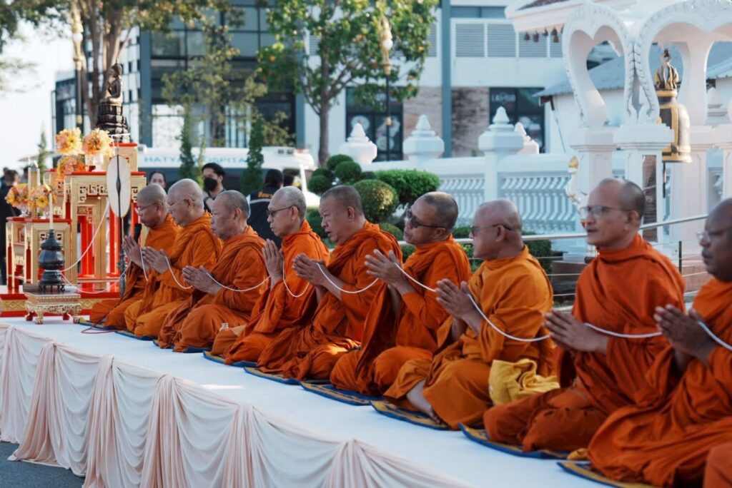เริ่มต้นด้วยการแสดงรำถวายเป็นพุทธบูชา ร่วมกันจุดเทียนมงคลนวหรคุณเศรษฐี 9 เล่ม เทียนมงคลโสฬสเศรษฐี และเทียนมงคลอัฏฐสตเศรษฐี 108 เล่ม รวมถึง ประกอบพิธีบวงสรวงและถวายผ้าห่มพระประธานอย่างพร้อมเพรียง จากนั้นได้ประกอบพิธีสงฆ์ ถวายสักการะแด่พระมงคลวชิรปโชติ ที่ปรึกษาเจ้าคณะจังหวัดสงขลา และพระเทพวชิรสุตาภรณ์ เจ้าคณะจังหวัดสงขลา ก่อนที่พระสงฆ์จะเจริญพระพุทธมนต์ ประพรมน้ำพระพุทธมนต์ และร่วมพิธีตักบาตรข้าวสารอาหารแห้ง เพื่อความเป็นสิริมงคล จากนั้นผู้เข้าร่วมพิธีได้ถวายผ้าห่มพระพุทธมงคลมหาราช ซึ่งปีนี้เป็นผ้าสีจีวร จากนั้นได้ร่วมกันประพรมน้ำอบ ที่ถือเป็นธรรมเนียมปฏิบัติเมื่อถวายผ้า