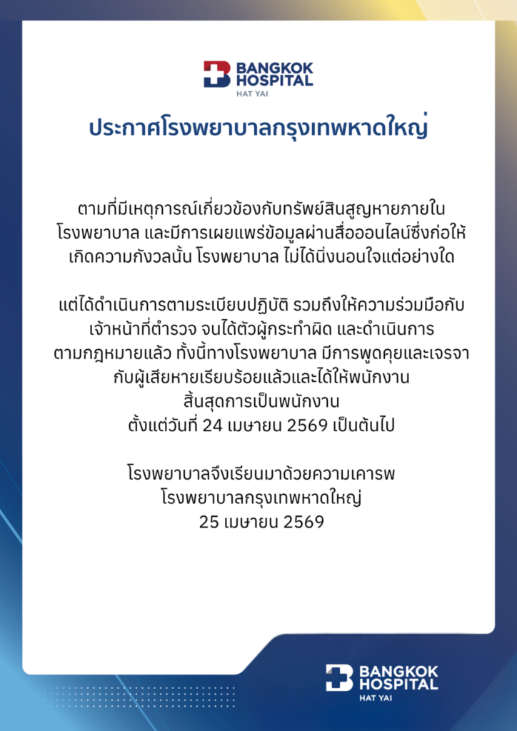 ประกาศโรงพยาบาลกรุงเทพหาดใหญ่