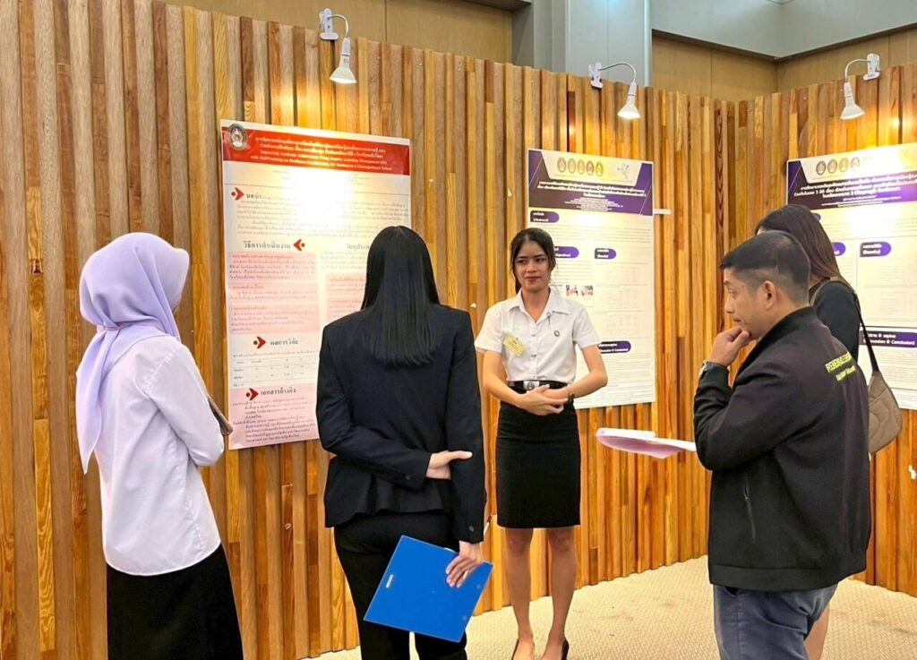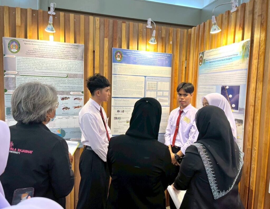 5. รางวัลการนำเสนองานวิจัยระดับดีเด่น ภาคโปสเตอร์เรื่อง การประยุกต์ใช้เทคโนโลยีภูมิสารสนเทศเพื่อการติดตามการเปลี่ยนแปลงชายฝั่งหาดชลาทัศน์ จังหวัดสงขลา ในปี พ.ศ.2568โดย น.ส.นัสรีน หะยีดือเระ และ น.ส.ฟาตีฮะห์ พะพิเนง นักศึกษาหลักสูตรครุศาสตรบัณฑิต สาขาวิชาวิทยาศาสตร์ทั่วไป คณะครุศาสตร์ อาจารย์ที่ปรึกษา ผศ.ศักดิ์ชาย คงนคร และ ผศ.นวรัตน์ สีตะพงษ์