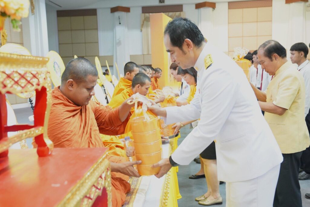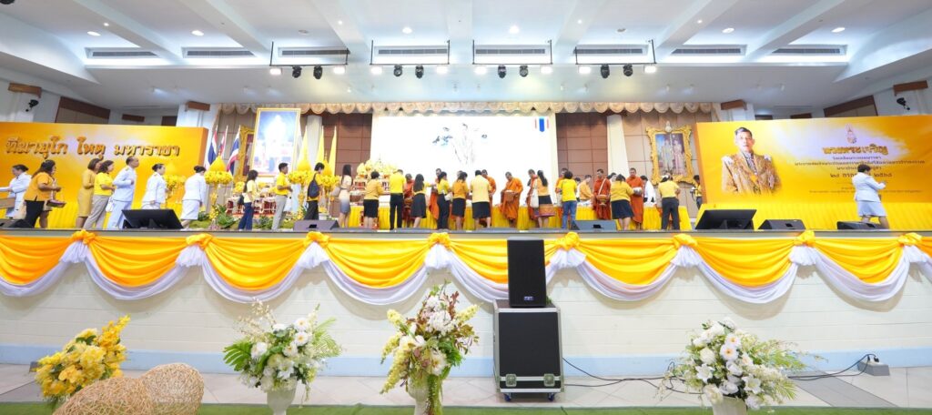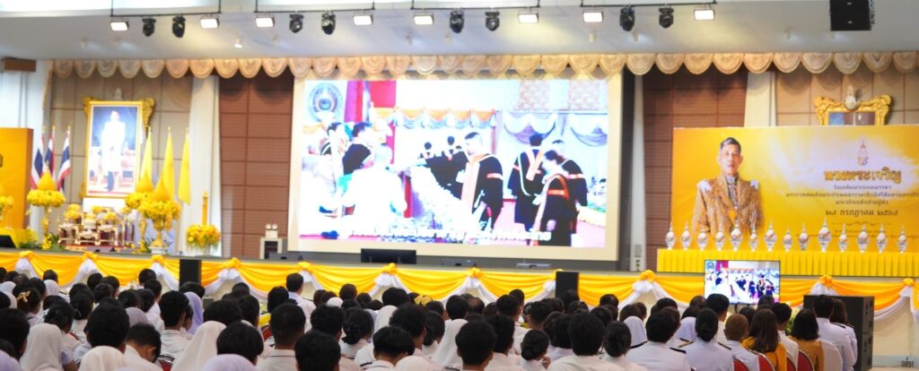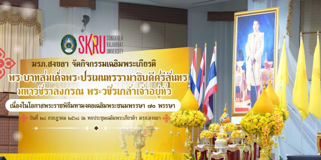 วันที่ 28 กรกฎาคม 2568 ผศ.พิเชษฐ์ จันทวี รักษาราชการแทนอธิการบดีมหาวิทยาลัยราชภัฏสงขลา (มรภ.สงขลา) นำคณะผู้บริหาร คณาจารย์ เจ้าหน้าที่ และนักศึกษา ร่วมกิจกรรมเฉลิมพระเกียรติพระบาทสมเด็จพระปรเมนทรรามาธิบดีศรีสินทร มหาวชิราลงกรณ พระวชิรเกล้าเจ้าอยู่หัว โดยได้ร่วมกันตักบาตรข้าวสาร อาหารแห้ง พระภิกษุสงฆ์ จำนวน 10 รูป พร้อมพิธีถวายเครื่องราชสักการะและถวายพระพรชัยมงคลเบื้องหน้าพระบรมฉายาลักษณ์ เพื่อถวายความจงรักภักดีเนื่องในโอกาสวันเฉลิมพระชนมพรรษา 73 พรรษา (28 กรกฎาคม 2568) ณ หอประชุมเฉลิมพระเกียรติ ฯ มรภ.สงขลา และกิจกรรมราชภัฏจิตอาสาบริจาคโลหิตเฉลิมพระเกียรติ ณ อาคารกองพัฒนานักศึกษา ในช่วงระหว่างวันที่ 24-25 กรกฎาคม 2568 เพื่อถวายเป็นพระราชกุศล ด้วยสำนึกในพระมหากรุณาธิคุณอย่างหาที่สุดมิได้