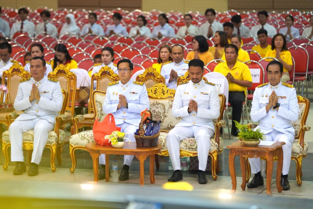 ผศ.พิเชษฐ์ จันทวี ประธานในพิธี กล่าวถวายราชสดุดีและกล่าวถวายพระพรชัยมงคล ความว่า ชาว มรภ.สงขลา ล้วนมีความปลาบปลื้มปีติโสมนัสเป็นล้นพ้น ในโอกาสมหามงคลเฉลิมพระชนมพรรษา พระบาทสมเด็จพระปรเมนทรรามาธิบดีศรีสินทร มหาวชิราลงกรณ พระวชิรเกล้าเจ้าอยู่หัว ได้เวียนมาบรรจบในวันที่ 28 กรกฎาคม พุทธศักราช 2568 นี้ ปวงข้าพระพุทธเจ้าทั้งหลายล้วนสำนึกในพระมหากรุณาธิคุณอย่างหาที่สุดมิได้ ที่ใต้ฝ่าละอองธุลีพระบาทได้ทรงปฏิบัติบำเพ็ญพระราชกรณียกิจน้อยใหญ่นานัปการ ได้อุทิศพระวรกายเพื่ออำนวยประโยชน์อันมหาศาลของประเทศชาติและอาณาประชาราษฎร์ ด้วยพระราชหฤทัยที่เปี่ยมด้วยพระเมตตา พระวิริยะอุตสาหะอันแน่วแน่ เป็นที่ประจักษ์แก่พสกนิกรชาวไทยและนานาอารยประเทศ
