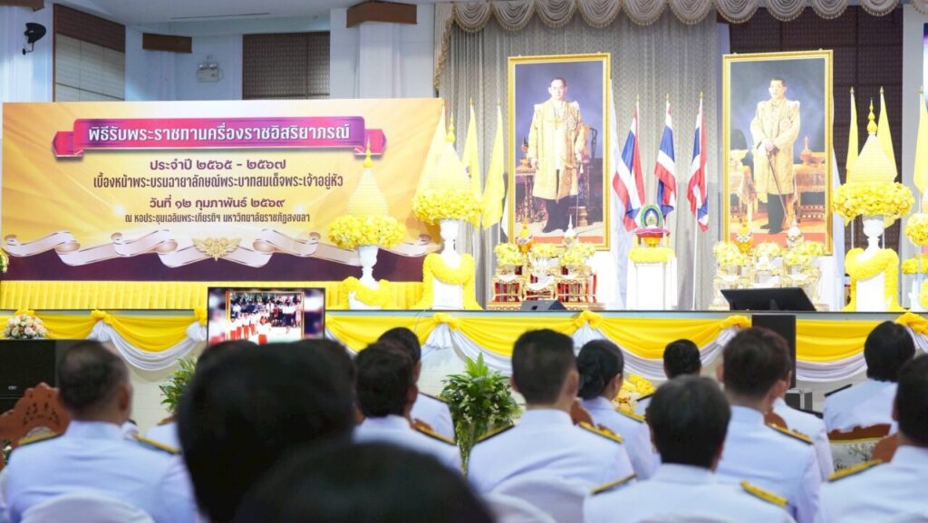เมื่อวันที่ 12 กุมภาพันธ์ 2569 มหาวิทยาลัยราชภัฏสงขลา (มรภ.สงขลา) จัดงานวันราชภัฏ (14 กุมภาพันธ์) ประจำปี 2569 ระหว่างวันที่ 9-12 กุมภาพันธ์ 2569 ณ ห้องประชุมชั้น 3 อาคารศูนย์รวมกิจการนักศึกษา และหอประชุมเฉลิมพระเกียรติฯ มรภ.สงขลา โดยได้รับเกียรติจาก ผศ.พิเชษฐ์ จันทวี อธิการบดี มรภ.สงขลา เป็นประธานในพิธี เพื่อน้อมรำลึกถึงพระมหากรุณาธิคุณและถวายสักการะแด่พระบาทสมเด็จพระบรมชนกาธิเบศรมหาภูมิพลอดุลยเดชมหาราช บรมนาถบพิตร ผู้ทรงคุณอันประเสริฐ และเป็นการสืบทอดอุดมการณ์ของชาวราชภัฏ “คนของพระราชา ข้าของแผ่นดิน”