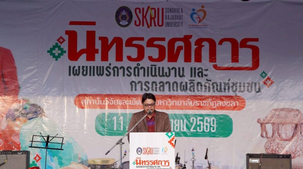 สถาบันวิจัยและพัฒนา มหาวิทยาลัยราชภัฏสงขลา (มรภ.สงขลา) จัดกิจกรรมนิทรรศการเผยแพร่การดำเนินงานและการตลาดผลิตภัณฑ์ชุมชน ภายใต้โครงการยกระดับมาตรฐานผลิตภัณฑ์ชุมชน (ด้วยหลัก BCG MODEL) ประจำปี พ.ศ. 2569 ระหว่างวันที่ 11-12 เมษายน 2569 ณ วัดแหลมพ้อ ตำบลเกาะยอ อำเภอเมืองสงขลา จังหวัดสงขลา