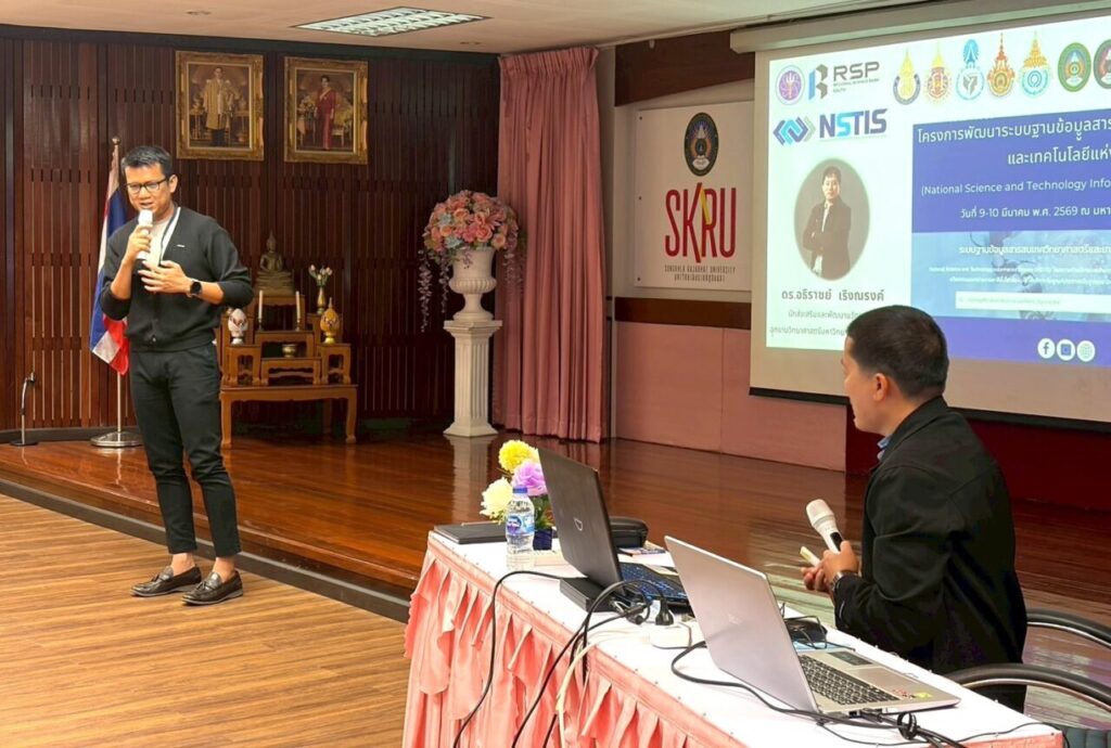 เมื่อวันที่ 9 มีนาคม 2569 สถาบันวิจัยและพัฒนา มหาวิทยาลัยราชภัฏสงขลา (มรภ.สงขลา) จัดอบรมเชิงปฏิบัติการใช้งานระบบ NSTIS ภายใต้โครงการพัฒนาระบบฐานข้อมูลสารสนเทศวิทยาศาสตร์และเทคโนโลยีแห่งชาติ หรือ “NSTIS” ณ ห้องประชุม IRD.L สถาบันวิจัยและพัฒนา มรภ.สงขลา