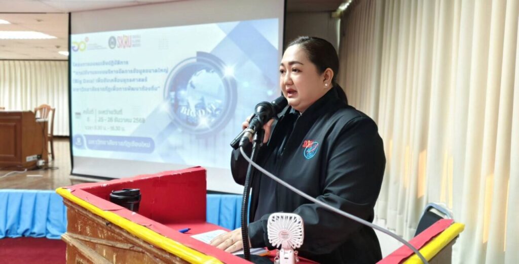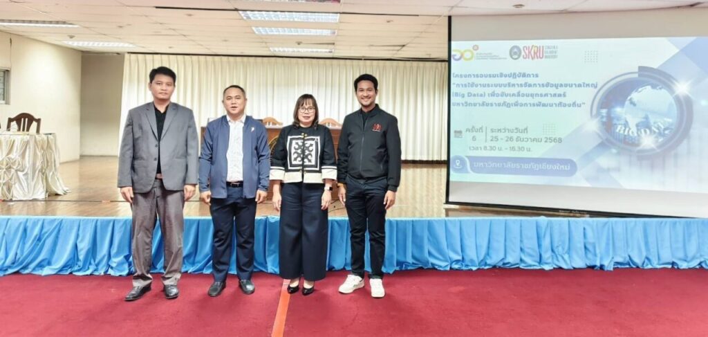 วันที่ 25-26 ธันวาคม 2568 ผศ.พิเชษฐ์ จันทวี อธิการบดีมหาวิทยาลัยราชภัฏสงขลา (มรภ.สงขลา) มอบหมายให้ อาจารย์วันฉัตร จารุวรรณโน รองอธิการบดีฝ่ายวางแผนและงบประมาณ นำทีมบุคลากรงานนโยบายและยุทธศาสตร์ กองนโยบายและแผน สำนักงานอธิการบดี มรภ.สงขลา ประกอบด้วย นางสโรชา บริสุทธิ์ นักวิเคราะห์นโยบายและแผนชำนาญการ และ นางกฤชณัท พงศ์จันทรเสถียร เจ้าหน้าที่บริหารงานทั่วไป จัดโครงการอบรมเชิงปฏิบัติการการใช้งานระบบบริหารจัดการข้อมูลขนาดใหญ่ (Big Data) เพื่อขับเคลื่อนยุทธศาสตร์มหาวิทยาลัยราชภัฏเพื่อการพัฒนาท้องถิ่น ครั้งที่ 6 ณ ห้องประชุมเอื้องคำ ชั้น 3 อาคาร 27 มหาวิทยาลัยราชภัฏเชียงใหม่ (มรภ.เชียงใหม่) ในการนี้ รศ.ดร.ชาตรี มณีโกศล อธิการบดี มรภ.เชียงใหม่ ได้มอบหมายให้ ผศ.เกษรา ปัญญา รองอธิการบดี เป็นประธานในพิธีเปิด