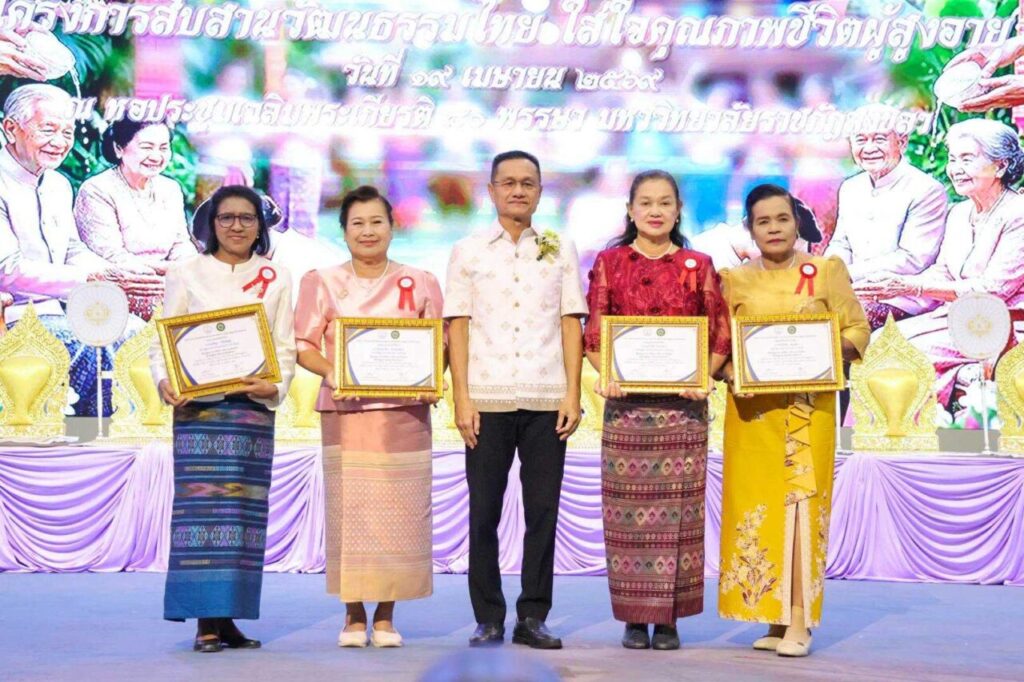 เมื่อวันที่ 19 เมษายน 2569 ผศ.พิเชษฐ์ จันทวี อธิการบดีมหาวิทยาลัยราชภัฏสงขลา (มรภ.สงขลา มอบหมายให้ ผศ.ดร.กรฤต นิลวานิช รองอธิการบดีฝ่ายกายภาพและพัฒนาท้องถิ่น เป็นตัวแทนร่วมพิธีเปิดโครงการสืบสานวัฒนธรรมไทย ใส่ใจคุณภาพชีวิตผู้สูงอายุ จัดโดยกองสวัสดิการสังคม องค์การบริหารส่วนจังหวัดสงขลา (อบจ.สงขลา) ร่วมกับสมาคมสภาผู้สูงอายุแห่งประเทศไทย ในพระราชูปถัมภ์สมเด็จพระศรีนครินทราบรมราชชนนี และสมาคมเครือข่ายสุขภาพผู้สูงอายุจังหวัดสงขลา โดยมี นายสุรสิทธ์ ศรีอินทร์ ที่ปรึกษานายก อบจ.สงขลา เป็นประธานเปิดโครงการฯ โครงการที่จัดขึ้นในครั้งนี้มีวัตถุประสงค์เพื่อส่งเสริมและอนุรักษ์คุณค่าของวัฒนธรรมไทยอันดีงาม ตลอดจนสร้างความตระหนักและความเข้าใจถึงความสำคัญของการดูแลและพัฒนาคุณภาพชีวิตผู้สูงอายุในสังคมไทย เปิดโอกาสให้ผู้สูงอายุได้มีส่วนร่วมในกิจกรรมทางสังคมและวัฒนธรรมอย่างสร้างสรรค์ พร้อมทั้งเปิดพื้นที่ให้แลกเปลี่ยนเรียนรู้และสร้างเครือข่าย มีผู้เข้าร่วมโครงการจำนวน 1,200 คน