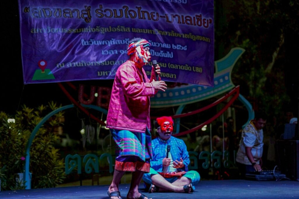 นอกจากนั้น ยังมีการจัดกิจกรรมแลกเปลี่ยนการแสดงทางศิลปวัฒนธรรมภายใต้ชื่อ “สงขลาสู้ ร่วมใจไทย-มาเลเซีย” ณ เวทีตลาดนัดวัฒนธรรม มรภ.สงขลา โดย ผศ.พิเชษฐ์ จันทวี ได้มอบหมายให้ ผศ.ดร.กันตภณ มะหาหมัด รองอธิการบดีฝ่ายบริหารและพัฒนาหน่วยงาน กล่าวต้อนรับคณะผู้มาเยือน เพื่อสร้างขวัญและกำลังใจแก่ประชาชนหลังเผชิญวิกฤตอุทกภัยครั้งร้ายแรง พร้อมทั้งกระชับความสัมพันธ์ด้านการอนุรักษ์ศิลปะท้องถิ่นร่วมกับสภาวัฒนธรรมแห่งรัฐเปอร์ลิส ประเทศมาเลเซีย มาร่วมแลกเปลี่ยนเรียนรู้การแสดงทางศิลปะและวัฒนธรรม