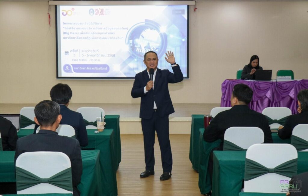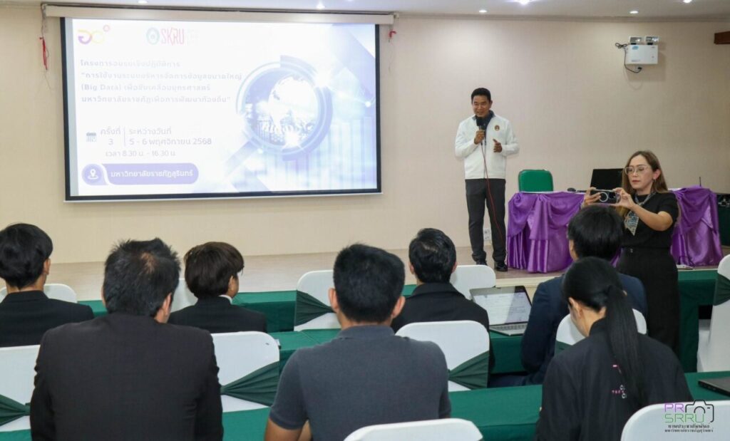 กองนโยบายและแผน สำนักงานอธิการบดี มรภ.สงขลา เยือน มรภ.สุรินทร์ จัดอบรมการใช้งานระบบบริหารจัดการข้อมูลขนาดใหญ่ “Big Data” ครั้งที่ 3 สป.อว. หนุนงบประมาณถ่ายทอดความรู้บุคลากร 38 ราชภัฏ เดินหน้าขับเคลื่อนยุทธศาสตร์มหาวิทยาลัยราชภัฏเพื่อการพัฒนาท้องถิ่น ผศ.พิเชษฐ์ จันทวี อธิการบดีมหาวิทยาลัยราชภัฏสงขลา (มรภ.สงขลา) มอบหมายให้ อาจารย์วันฉัตร จารุวรรณโน รองอธิบดีฝ่ายวางแผนและงบประมาณ พร้อมด้วย นางกฤชณัท พงศ์จันทรเสถียร น.ส.จุฑามาศ วิหะรัญ นางวิภาวี โสตถิพันธุ์ บุคลากรกองนโยบายและแผน สำนักงานอธิการบดี มรภ.สงขลา จัดโครงการอบรมเชิงปฏิบัติการการใช้งานระบบบริหารจัดการข้อมูลขนาดใหญ่ (Big Data) เพื่อขับเคลื่อนยุทธศาสตร์มหาวิทยาลัยราชภัฏเพื่อการพัฒนาท้องถิ่น ครั้งที่ 3 ระหว่างวันที่ 5-6 พฤศจิกายน 2568 ณ ห้องประชุม อาคารฝึกประสบการณ์วิชาชีพล้านช้าง มหาวิทยาลัยราชภัฏสุรินทร์ (มรภ.สุรินทร์) สนับสนุนงบประมาณโดยสำนักงานปลัดกระทรวงการอุดมศึกษา วิทยาศาสตร์ วิจัยและนวัตกรรม (สป.อว.) โดยได้รับเกียรติจาก รศ.ดร.ฉลอง สุขทอง อธิการบดีมหาวิทยาลัยราชภัฏสุรินทร์ เป็นประธานในพิธีเปิด ทั้งนี้ การจัดอบรมดังกล่าวมีวัตถุประสงค์เพื่อสร้างความเข้าใจเกี่ยวกับการดำเนินโครงการ การใช้งานระบบ ระเบียนข้อมูล การใช้ประโยชน์จากฐานข้อมูลให้กับมหาวิทยาลัยราชภัฏกลุ่มเป้าหมาย ซึ่งในครั้งนี้เป็นการจัดอบรมให้แก่บุคลากรจากมหาวิทยาลัยราชภัฏเขตภาคตะวันออกเฉียงเหนือตอนล่าง ประกอบด้วย มหาวิทยาลัยราชภัฏสุรินทร์ มหาวิทยาลัยราชภัฏชัยภูมิ มหาวิทยาลัยราชภัฏนครราชสีมา มหาวิทยาลัยราชภัฏบุรีรัมย์ มหาวิทยาลัยราชภัฏศรีสะเกษ และ มหาวิทยาลัยราชภัฏอุบลราชธานี ตลอดจนชี้แจงการนำข้อมูลเข้าสู่ระบบอย่างถูกต้อง ซึ่งในการขับเคลื่อนยุทธศาสตร์มหาวิทยาลัยราชภัฏเพื่อการพัฒนาท้องถิ่น สป.อว. จำเป็นต้องมีระบบบริหารจัดการข้อมูลขนาดใหญ่ (Bg Data) จึงได้จัดทำโครงการจัดทำระบบบริหารจัดการข้อมูลขนาดใหญ่ (Big Data) เพื่อขับเคลื่อนยุทธศาสตร์มหาวิทยาลัยราชภัฏเพื่อการพัฒนาท้องถิ่น โดยได้ดำเนินการตั้งแต่ปี พ.ศ. 2564-ปัจจุบัน การจัดอบรมในครั้งนี้ได้รับเกียรติจาก อาจารย์ ดร.อดุลย์ สนั่นเอื้อเม็งไธสง จากมหาวิทยาลัยราชภัฏชัยภูมิ ในฐานะประธานฐานข้อมูลมหาวิทยาลัยราชภัฏเพื่อการพัฒนาท้องถิ่น สป.อว. ผศ.ดร.วิโรจน์ อภินันท์ธนากร ผู้อำนวยการสำนักวิทยบริการและเทคโนโลยีสารสนเทศ มหาวิทยาลัยราชภัฏชัยภูมิ อาจารย์สุวัฒน์ กล้วยทอง รองผู้อำนวยการสำนักวิทยบริการและเทคโนโลยีสารสนเทศ มหาวิทยาลัยรา