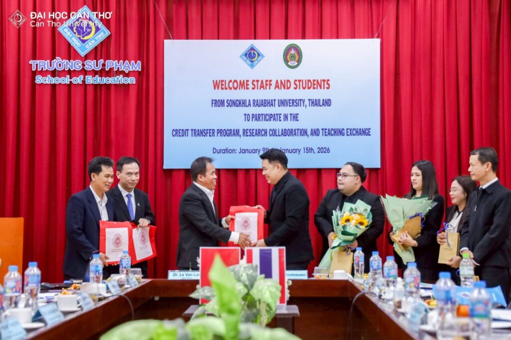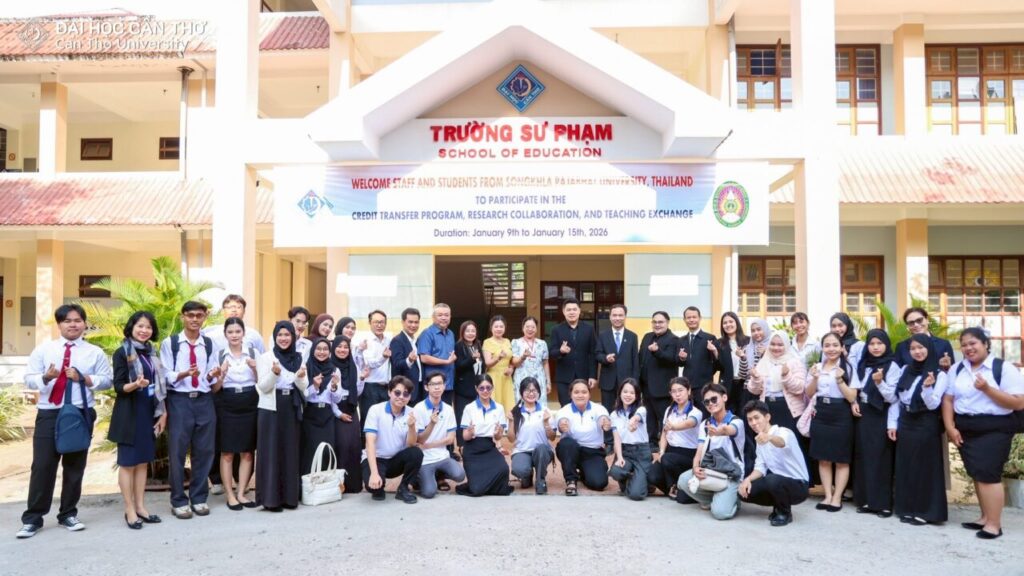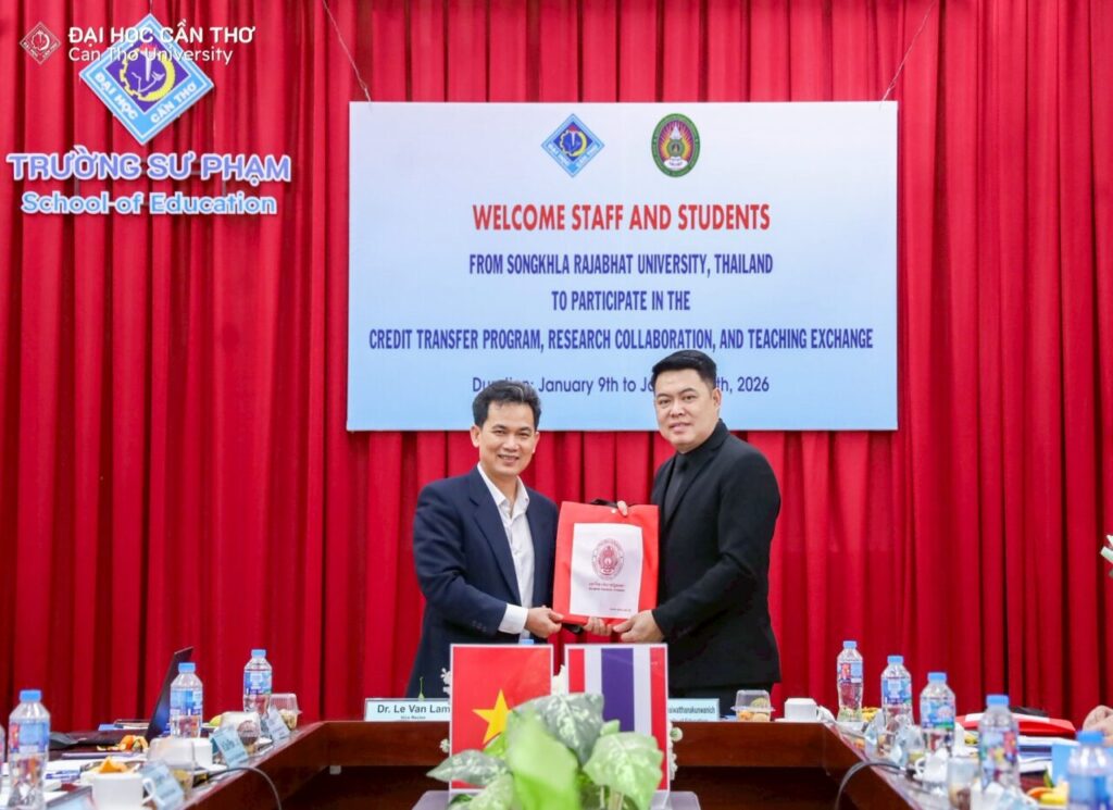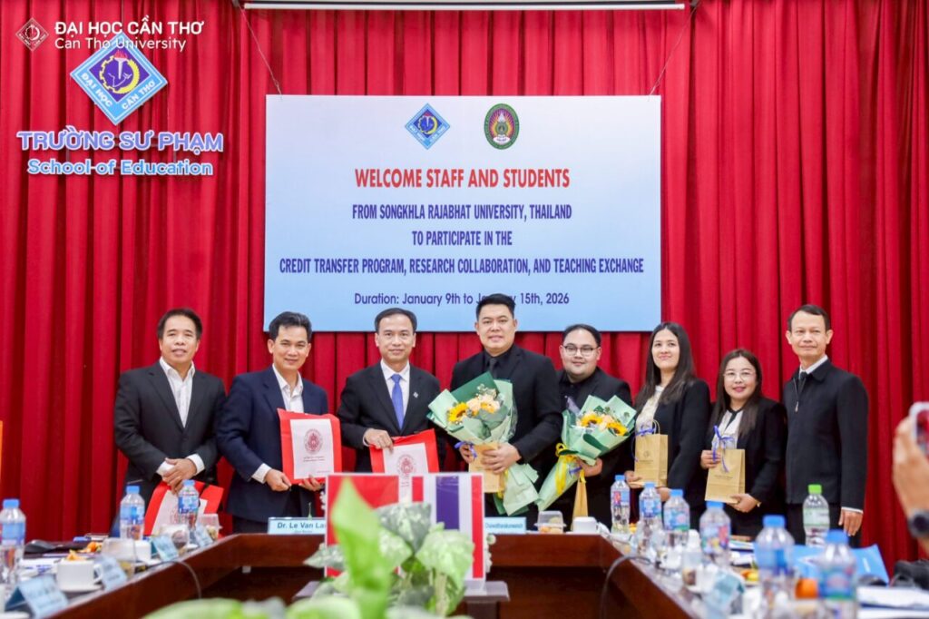 คณะครุศาสตร์ มหาวิทยาลัยราชภัฏสงขลา (มรภ.สงขลา) จัดโครงการส่งเสริมความร่วมมือการแลกเปลี่ยนการเรียนรู้ด้านครุศาสตร์ ณ Can Tho University สาธารณรัฐสังคมนิยมเวียดนาม ระหว่างวันที่ 9-15 มกราคม 2569 โดย ผศ.ดร.โสภณ ชัยวัฒนกุลวานิช คณบดีคณะครุศาสตร์ ได้นำคณาจารย์ผู้ควบคุมโครงการ อาจารย์ ดร.เอกพล ไพโรจน์ ผู้ช่วยคณบดี ผศ.ดร.จงกล บัวแก้ว ผศ.ดร.ณรงค์ กาญจนะ และ ผศ.ดร.พนัชกร พิทธิยะกุล อาจารย์คณะครุศาสตร์ พร้อมตัวแทนนักศึกษาคณะครุศาสตร์ที่ผ่านการคัดเลือกเข้าร่วมโครงการ จำนวน 18 คน เข้าพบคณะผู้บริหาร School of Education, Can Tho University นำโดย Dr. Le Van Lam, Vice Rector of Can Tho University Assoc. Prof. Huynh Anh Huy คณบดี พร้อมด้วย Assoc. Prof. Tran Van Minh Prof. Lam Quoc Anh และ Dr. Le Van Nhuong รองคณบดี ซึ่งได้ให้การต้อนรับคณะผู้มาเยือนอย่างอบอุ่น การเดินทางไปเยือน Can Tho University ในครั้งนี้ ทั้งสองฝ่ายได้ร่วมแลกเปลี่ยนแนวคิดและประสบการณ์ด้านการจัดการเรียนการสอนทางครุศาสตร์ นอกจากนั้น ยังเป็นการเปิดโอกาสให้นักศึกษา มรภ.สงขลา ได้เรียนรู้จากประสบการณ์ตรงในห้องเรียนจากมหาวิทยาลัยในต่างประเทศ และได้รับความรู้ความเข้าใจ พร้อมเปิดโลกทัศน์ทางด้านการจัดการเรียนการสอนครุศาสตร์ ก่อให้เกิดการประสานสัมพันธ์ที่ดีตามบันทึกความเข้าใจระหว่างองค์กรและสร้างเครือข่ายความร่วมมือระหว่างมหาวิทยาลัยในต่างประเทศ ทั้งนี้ ที่ผ่านมาคณะครุศาสตร์ มรภ.สงขลา ได้ลงนามบันทึกความร่วมมือ (MOA) กับสถาบันการศึกษเครือข่ายในต่างประเทศ และได้รับประโยชน์มากมาย นักศึกษา อาจารย์และบุคลากรได้รับประสบการณ์และความรู้ในการเข้าร่วมกิจกรรมแลกเปลี่ยน ซึ่งเป็นประสบการณ์ที่สำคัญในการพัฒนาคุณภาพการศึกษาสู่สากล และได้รู้จักเรียนรู้ในความแตกต่างทางวิถีชีวิต ศิลปวัฒนธรรม ภาษา อาหาร และอื่น ๆ รวมทั้งเกิดความสัมพันธ์ที่ดีระหว่างเครือข่ายทางวิชาชีพครู สิ่งเหล่านี้จะเป็นประโยชน์ต่อการพัฒนาคณะครุศาสตร์ และ มรภ.สงขลา ให้มีความก้าวหน้าและทัดเทียมกับมหาวิทยาลัยในระดับสากลต่อไปข้อมูลและรูป โดย คณะครุศาสตร์ มรภ.สงขลา