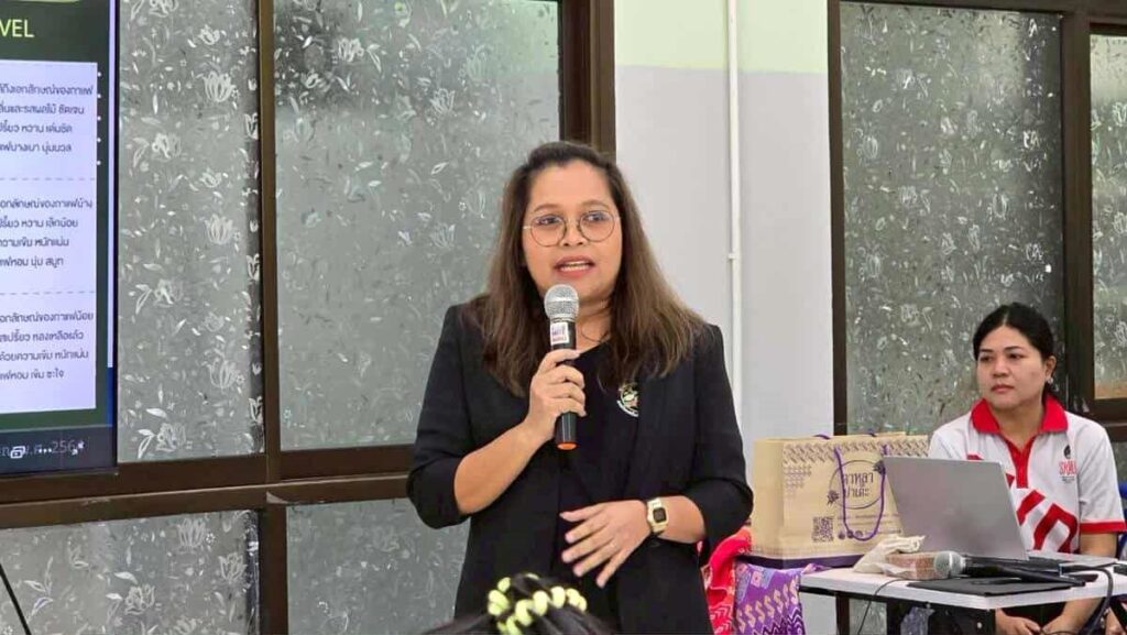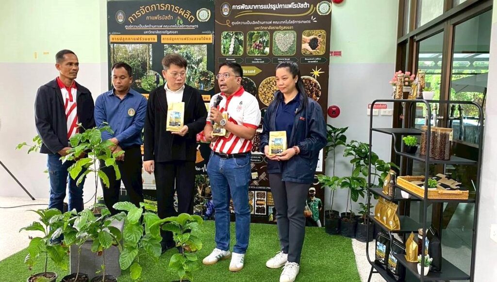 ในการนี้ ผศ.พิเชษฐ์ จันทวี รักษาราชการแทนอธิการบดี มรภ.สงขลา ได้มอบหมายให้ รศ.ดร.วีระชัย แสงฉาย รองอธิการบดีฝ่ายวิชาการและวิจัย อาจารย์พุฒิธร ตุกเตียน ผู้อำนวยการสถาบันวิจัยและพัฒนา ตลอดจนผู้บริหารและบุคลากรจากสถาบันวิจัยและพัฒนา ร่วมให้การต้อนรับ ซึ่ง มรภ.สงขลา ได้นำเสนอข้อมูล โครงการ “กาแฟโรบัสต้าเขาวังชิง” ที่มีจุดเริ่มต้นจากการพัฒนาสินค้ากาแฟอัตลักษณ์ด้วยเทคโนโลยีและนวัตกรรม พัฒนาการผลิตให้มีประสิทธิภาพต้นทุนต่ำ ทั้งยังสร้างการรับรู้ผลิตภัณฑ์และการพัฒนาช่องทางการจัดจำหน่าย และการส่งเสริมกลยุทธ์ทางการตลาดและการจำหน่ายเชิงพาณิชย์สู่ความยั่งยืนของเกษตรกร โดย รศ.ดร.คริษฐ์สพล หนูพรหม และ อาจารย์ ดร.กมลทิพย์ นิคมรัตน์ ทีมนักวิจัยจากคณะเทคโนโลยีการเกษตร