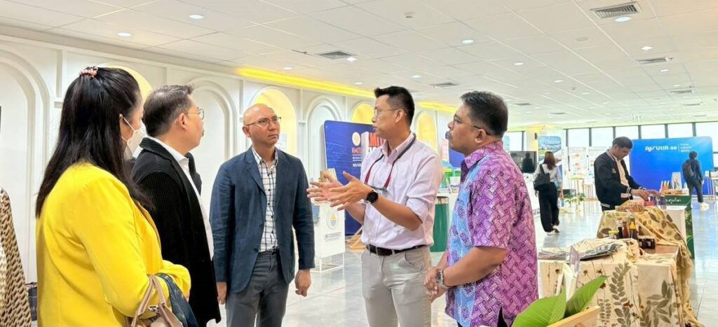 นอกจากนั้น ในวันที่ 1 กันยายน 2568 คณะผู้แทนจาก มรภ.สงขลา นำโดย รศ.ดร.วีระชัย แสงฉาย รองอธิการบดีฝ่ายวิชาการและวิจัย พร้อมด้วยทีมบริหารสถาบันวิจัยและพัฒนา ผศ.อภิชาติ พันชูกลาง รองผู้อำนวยการฝ่ายวิจัยและยุทธศาสตร์สถาบัน รศ.ดร.สายฝน ไชยศรี รองผู้อำนวยการฝ่ายบริการวิชาการและรับใช้สังคม อาจารย์ ดร.เพชร รองพล รองผู้อำนวยการฝ่ายบริหารจัดการนวัตกรรมและกิจการพิเศษ นางสาวเกศสุพร มากสาขา หัวหน้าสำนักงานสถาบันวิจัยและพัฒนา และ นางสาวรามาวดี ปั้นทอง เจ้าหน้าที่ผู้ประสานงานคลินิกเทคโนโลยี ร่วมแสดงศักยภาพของมหาวิทยาลัยในการขับเคลื่อนงานวิจัยเพื่อประโยชน์สู่สังคมและเศรษฐกิจท้องถิ่น โดยได้ร่วมจัดบูธและประชุมนำเสนอ “แนวทางการเชื่อมโยงการทำงานเพื่อขับเคลื่อนการนำผลงานวิจัยและนวัตกรรมไปใช้ประโยชน์ให้บรรลุเป้าหมาย SRI For All” ณ อุทยานวิทยาศาสตร์ภูมิภาค ภาคใต