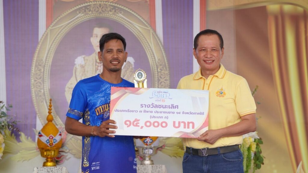 ประเภทเรือยาว 7 ฝีพาย ประชาชนชาย (ก) 14 จังหวัดภาคใต้ ชนะเลิศ ได้แก่ ทีมเทพมังกรฟ้า ประเภทเรือยาว 7 ฝีพาย ประชาชนชาย (ข) 14 จังหวัดภาคใต้ ชนะเลิศ ได้แก่ ทีมเจ้าแม่พาขวัญ 2 ประเภทเรือยาว 7 ฝีพายเยาวชนชาย อายุไม่เกิน 18 ปี 14 จังหวัดภาคใต้ ชนะเลิศ ได้แก่ ทีมใหม่พล็อก ประเภทเรือยาวพื้นบ้านกีฬาสายน้ำโรงสำโรง ชนะเลิศ ได้แก่ ทีมผู้นำชุมชนและกิจกรรมชุมชนตำบลเขารูปช้าง รองชนะเลิศอันดับ 1 ได้แก่ ทีมสำนักงานวัฒนธรรมจังหวัดสงขลา รองชนะเลิศอันดับ 2 ได้แก่ ทีมเทศบาลเมืองเขารูปช้าง รองชนะเลิศอันดับ 3 ได้แก่ ทีมมหาวิทยาลัยราชภัฏสงขลา