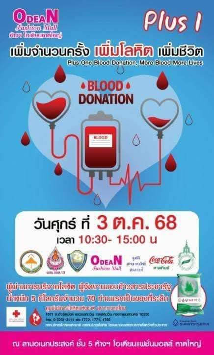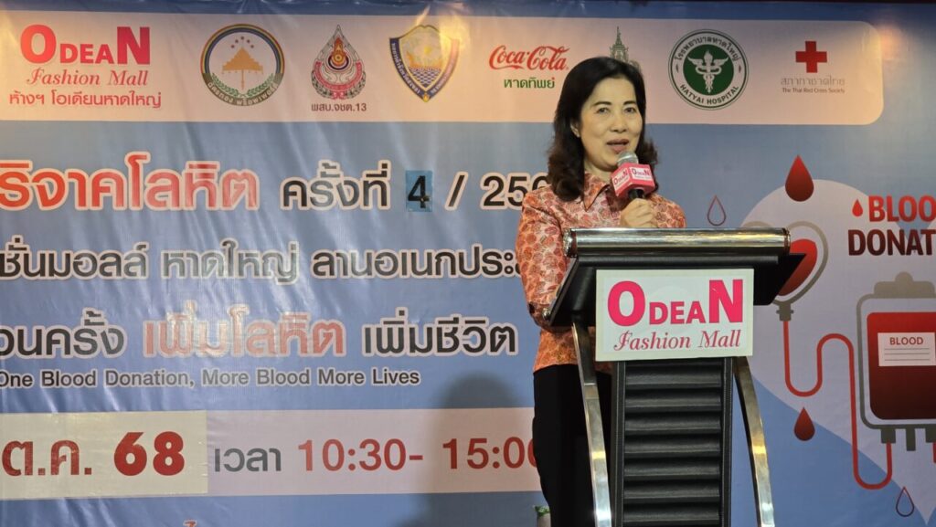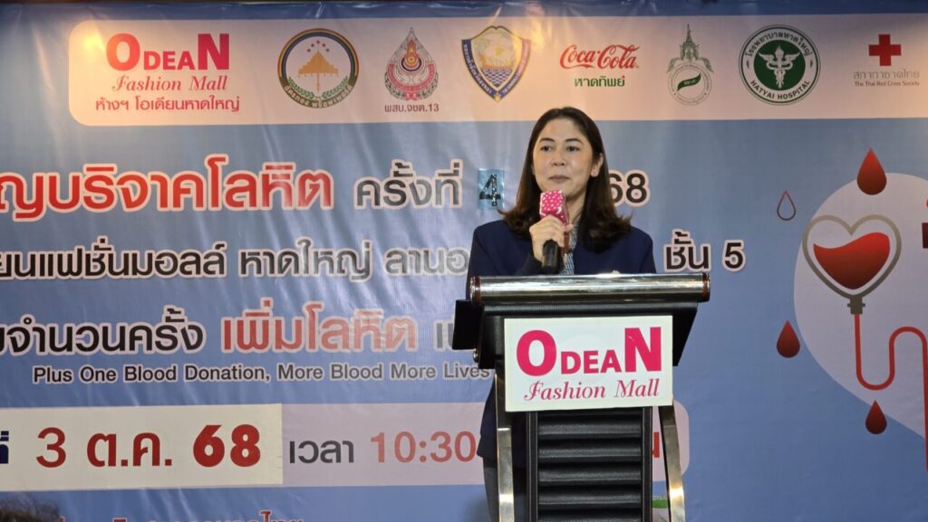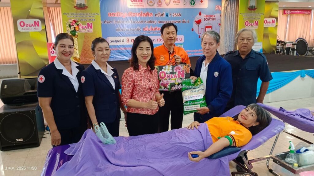 วันศุกร์ที่ 3 ตุลาคม 2568 ณ. ห้างๆโอเดียน หาดใหญ่ ชั้น 5 เวลา 11.00 น.ได้จัดกิจกรรม รับบริจาคโลหิต ครั้งที่ 4 ประจำปี 2568 คุณปวีณ์ริศา เกิดสม นายกเหล่ากาชาดจังหวัดสงขลา เป็นประธานกล่าวเปิดงาน