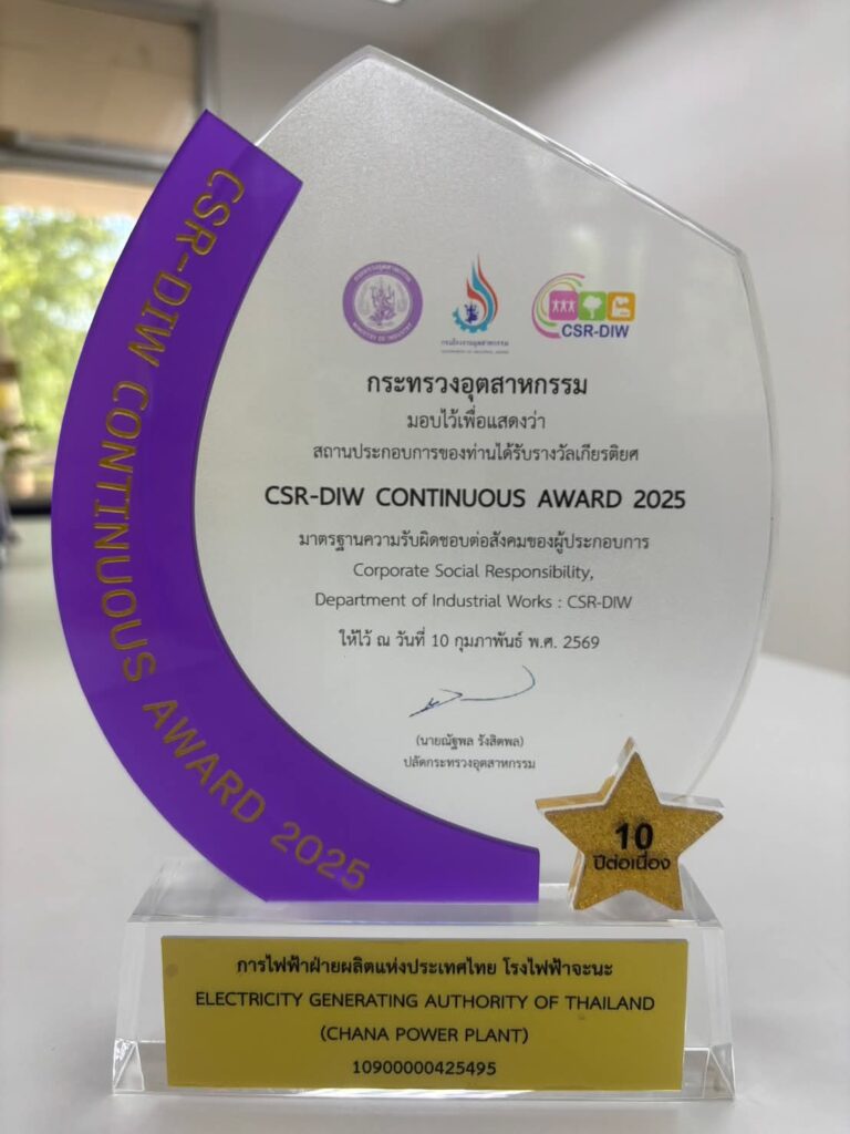 CSR-DIW คือโครงการส่งเสริมสถานประกอบการรวมพลังสร้างความรับผิดชอบต่อสังคมเป็นสุขอย่างยั่งยืน (Corporate Social Responsibility, Department of Industrial Works: CSR-DIW) ซึ่งโครงการนี้ กรมโรงงานอุตสาหกรรม ร่วมกับสถาบันรับรองมาตรฐานไอเอสโอได้จัดขึ้น โดยมีวัตถุประสงค์เพื่อส่งเสริมการดำเนินงานด้านความรับผิดชอบต่อสังคมแก่ผู้ประกอบการอุตสาหกรรม และการพัฒนาอย่างยั่งยืน (Sustainable Development) รวมทั้งเพื่อสนับสนุนให้ผู้ประกอบการอุตสาหกรรมสามารถดำเนินกิจกรรมร่วมกับชุมชน และได้รับการยอมรับจากชุมชนรอบข้าง อันจะเป็นการเพิ่มพูนขีดความสามารถในการแข่งขัน และสร้างการเติบโตอย่างยั่งยืนให้เกิดขึ้นกับภาคธุรกิจ ทั้งภายในประเทศและระดับสากลโดยในปี 2568 โรงไฟฟ้าจะนะ ได้รับคัดเลือกจากคณะกรรมการกรมโรงงานอุตสาหกรรมให้ได้รับรางวัล CSR-DIW Continuous คือ โรงงานอุตสาหกรรมที่ได้รับรางวัล CSR-DIW จากกรมโรงงานอุตสาหกรรม ตั้งแต่ปี 2555-2568 และมุ่งมั่นแสดงความรับผิดชอบต่อสังคมอย่างต่อเนื่อง