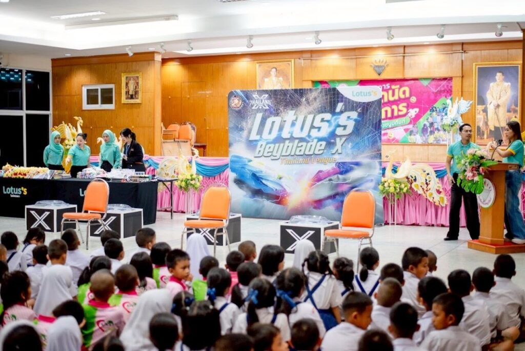 โลตัส จับมือ เอ็นบี ฮอปบี้ สมาคมเบย์เบลดแห่งประเทศไทย ร่วมจัดกิจกรรม สานฝันวัยเด็ก เบย์เบลด ออนทัวร์ ให้กับน้องๆ โรงเรียนในพื้นที่ หาดใหญ่ – ยะลา บริษัท ซีพี แอ็กซ์ตร้า จำกัด (มหาชน) ผู้ดำเนินธุรกิจค้าส่งค้าปลีก ‘แม็คโคร-โลตัส’มุ่งดำเนินธุรกิจเคียงข้างสังคมไทยในทุกมิติ ทั้งด้านสิ่งแวดล้อม สังคม ร่วมจับมือกับ คู่ค้า พันธมิตร ผ่านโครงการ “สานฝันวัยเด็ก เบย์เบรด ออนทัวร์ ” โดยร่วมกับ บริษัท เอ็นบี ฮอปบี้ จำกัด ผู้จัดการแข่งขันกิจกรรม เบย์เบรด พร้อมด้วย คู่ค้าพันธมิตร MC JEAN , KFC และ SF CINEPLEX ทำกิจกรรม ให้ความรู้การเล่น พร้อมกับจัดการแข่งขัน เบย์เบลด ให้กับน้องๆในโรงเรียน พื้นที่ หาดใหญ่ – ยะลา โรงเรียน เทศบาล1 คลองแห อำเภอหาดใหญ่ จังหวัดสงขลา และโรงเรียนนิบงชนูปถัมป์ อำเภอเมืองยะลา จังหวัดยะลา เมื่อวันที่ 24-25 กุมภาพันธ์ 2569 เพื่อสานฝันกิจกรรมสุดฮิตให้กับน้องๆในพื้นที่ห่างไกล โดย เบย์เบลด (Beyblade) คือของเล่นลูกข่างต่อสู้สุดฮิตที่พัฒนาจากลูกข่างญี่ปุ่นดั้งเดิม ซึ่งปัจจุบันได้รับความนิยมแพร่หลาย โดยมีการจัดการแข่งขันในโลตัส ทั่วประเทศ