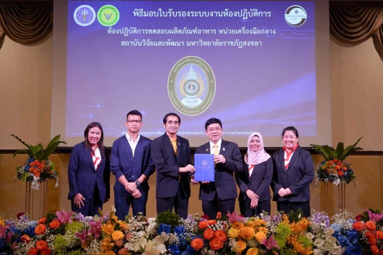 มรภ.สงขลา รับมอบใบรับรองระบบงานห้องปฏิบัติการทดสอบผลิตภัณฑ์อาหารตามมาตรฐาน ISO/IEC 17025 เดินหน้ายกระดับคุณภาพสู่สากล
