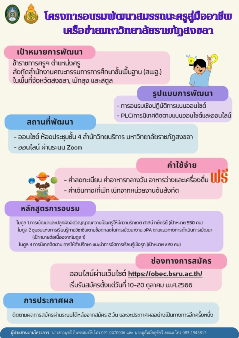 เมื่อวันที่ 25 ตุลาคม 2566 ตัวแทนนักเรียนโรงเรียนสาธิต มหาวิทยาลัยราชภัฏสงขลา (มรภ.สงขลา) จำนวน 2 ทีม ได้แก่ ด.ช.จิรวัฒน์ คงแก้ว เข้ารับรางวัลรองชนะเลิศอันดับ 1 รับทุนการศึกษา 20,000 บาท พร้อมใบประกาศนียบัต
