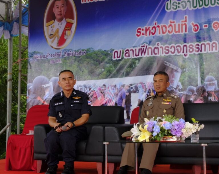 พล.ต.ท.สราวุฒิ การพานิช ผู้ช่วย ผบ.ตร. เดินทางมาตรวจเยี่ยมเป็นประธานพิธีเปิดการฝึกทบทวนข้าราชการตำรวจซึ่งปฏิบัติหน้าที่ดูแลการชุมนุมสาธารณะ รุ่นที่ ๔