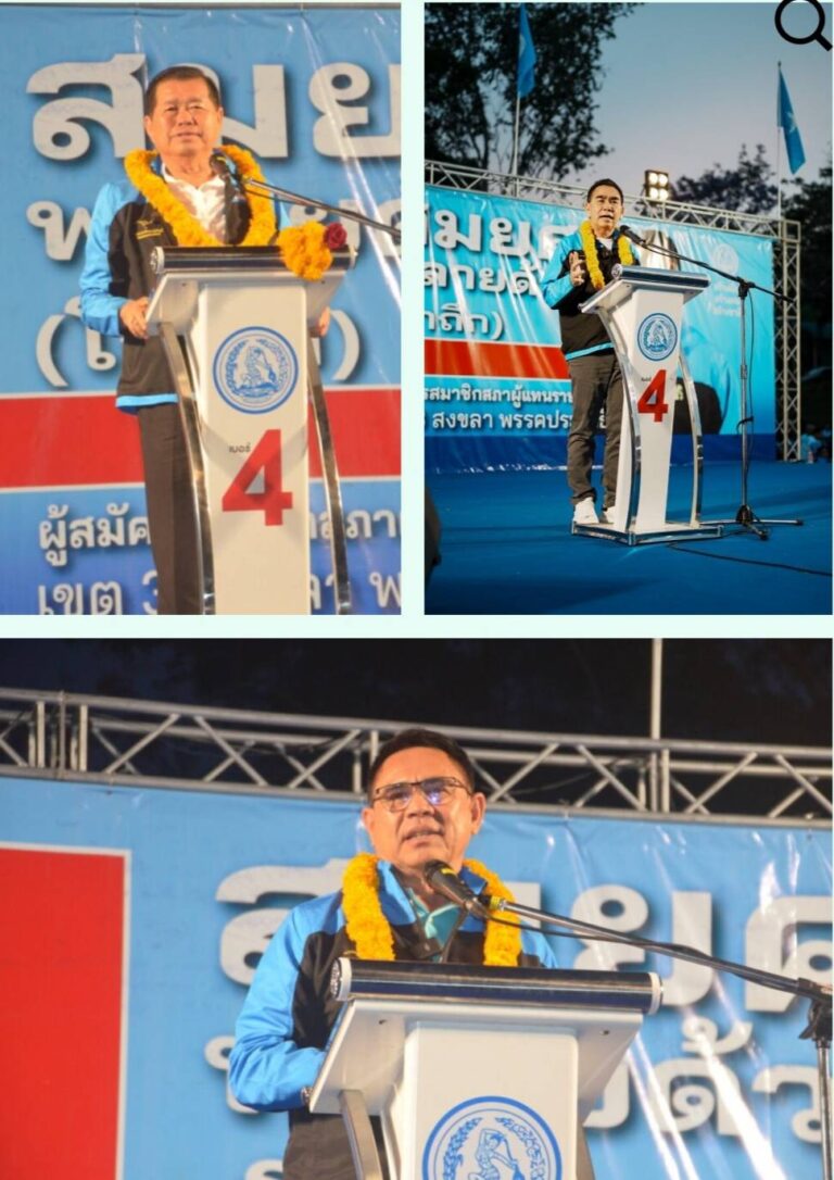 "เศรษฐา ทวีสิน,จาตุรนต์ ฉายแสง,ปานปรีย์ พหิทธานุกร,วิสุทธิ์ ไชยณรุณ,ณัฐวุฒิ ใสยเกื้อ" พร้อมขุนพลผู้สมัคร ส.ส.สงขลาทั้ง 9 เขต ร่วมเปิดเวทีปราศรัยหาเสียง ท่ามกลางประชาชนแห่ร่วมเข้าฟังกว่า 5,000 คน ชูนโยบายเงินดิจิทัล 10,000 บาท อายุ 16 ปีขึ้นไปได้ทุกคน ด้าน"อุ๊งอิ๊ง"แคนดิเดตนายกฯ พรรคเพื่อไทย โฟนอินมายังเวทีปราศรัยอ้อนคนสงขลาเปิดใจรับเพื่อไทย