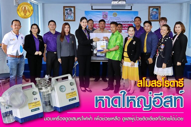 สโมสรโรตารี หาดใหญ่อีสท์ มอบเครื่องดูดเสมหะไฟฟ้าเพื่อช่วยเหลือดูแลผู้ป่วยติดเตียง และผู้ป่วยยากไร้ชาวหาดใหญ่ที่มีรายได้น้อย มูลค่า 39,000 บาท