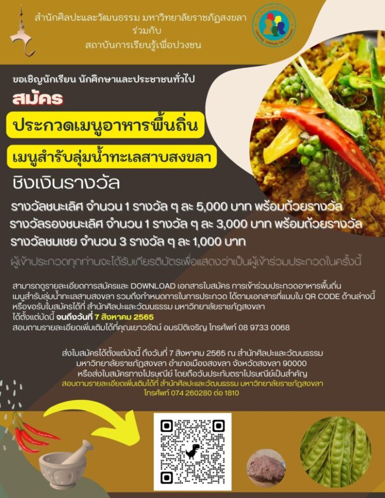 มรภ.สงขลา สุดปลื้ม ทีมนักศึกษาคณะวิทยาการจัดการ คณะเทคโนโลยีการเกษตร ภายใต้การผลักดันของศูนย์บ่มเพาะธุรกิจ สถาบันวิจัยและพัฒนา คว้าทุนโครงการยุววิสาหกิจเริ่มต้น (IDEA)จาก 3 ผลงาน 1. พัฒนาระบบIOTในอุตสาหกรรมเพาะเลี้ยงปลากัด 2. ผลิตภัณฑ์โจ๊กกึ่งสำเร็จรูปรสแกงเลียงปลีกล้วยในบรรจุภัณฑ์ถ้วยร้อน 3. นวัตกรรมการแปรรูปกาแฟคั่วปรุงผสม รับทุนสนับสนุนทีมละ 100,000 บาท ต่อยอดโครงการสู่ผู้ประกอบการStart up