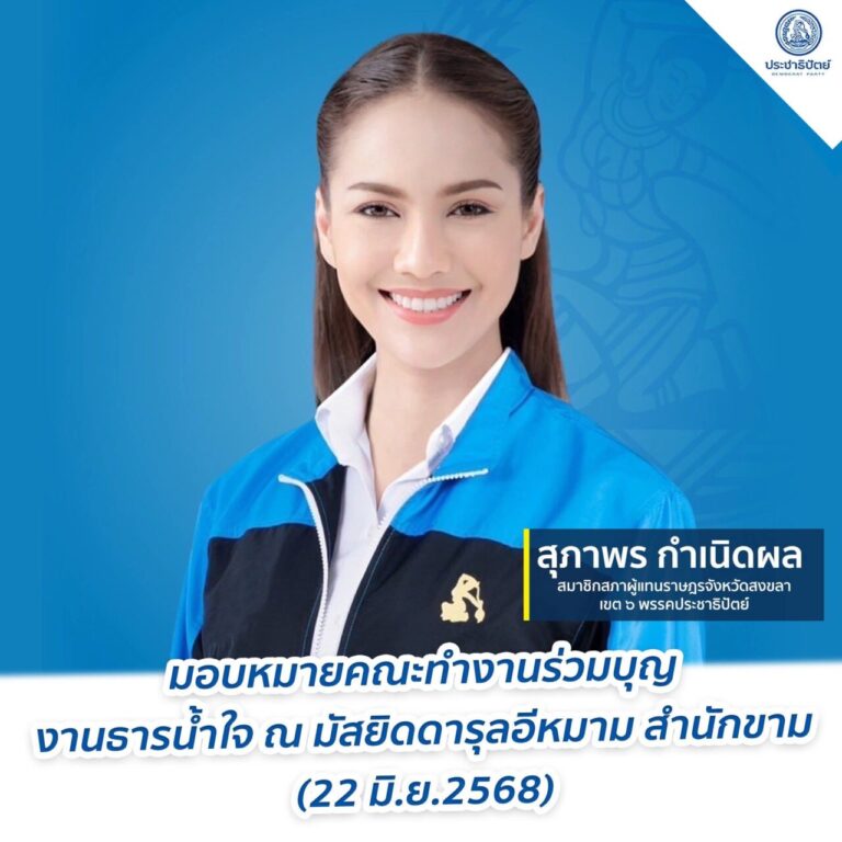 สส.น้ำหอม” นางสาวสุภาพร กำเนิดผล สส.สงขลา มอบหมายคณะทำงานร่วมบุญงานธารน้ำใจ ณ มัสยิดดารุลอีหมาม สำนักขาม