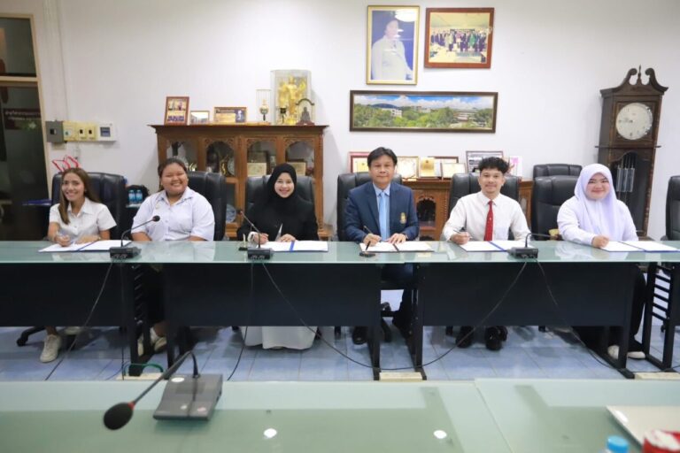 เมื่อวันที่ 21 พฤษภาคม 2568 ผศ.พิเชษฐ์ จันทวี รักษาราชการแทนอธิการบดีมหาวิทยาลัยราชภัฏสงขลา (มรภ.สงขลา) พร้อมด้วย ผศ.ดร.กันตภณ มะหาหมัด รองอธิการบดีฝ่ายบริหารและพัฒนาหน่วยงาน ผศ.ธนัย ตันวานิช รองอธิการบดีฝ่ายพัฒนานักศึกษา อาจารย์วันฉัตร จารุวรรณโน รองอธิการบดีฝ่ายวางแผนและงบประมาณ รศ.ดร.คมวิทย์ ศิริธร ผู้ช่วยอธิการบดี อาจารย์ ดร.ปริยาพิม ฉลองเดช ผู้ช่วยอธิการบดีและตัวแทนคณะผู้บริหาร มรภ.สงขลา ร่วม