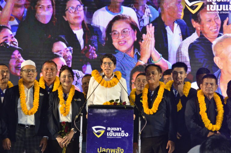 วันนี้ ( 26 ม.ค.68) ที่ สวนสาธารณะอำเภอเมืองสงขลา นายสุพิศ พิทักษ์ธรรม ทีมสงขลาพลังใหม่ พร้อมทีมบริหาร ทั้งนายสมพร ใช้บางยาง นายอับดลรอหมาน กาเหย็ม นางสาวปรินดา ปาลาเร่ นายฉัตรเพชร ครุอำโพธิ์ ขึ้นเวทีสลับกันเรียกคะแนนชูนโยบายเ