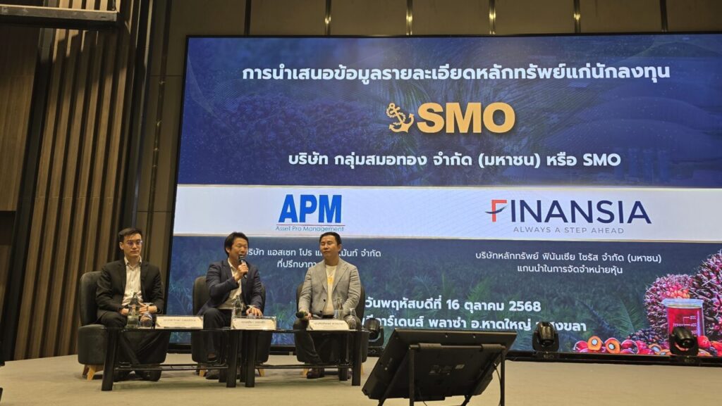 SMO จับมือ APM และ FSS ปูพรมโรดโชว์ 11 จังหวัด ประเดิม จ.ชลบุรีมั่นใจพื้นฐานธุรกิจแกร่ง นักลงทุนตอบรับดี“กลุ่มสมอทอง” ปักหมุดโรดโชว์ 11 จังหวัด ประเดิมที่ชลบุรี ราชบุรี นครปฐม พิษณุโลก นครสวรรค์ นครราชสีมา ขอนแก่น เชียงใหม่ สงขลา(หาดใหญ่) สุราษฎร์ธานี และปิดท้ายที่กรุงเทพฯ เสนอขาย IPO 231.60 ล้านหุ้น โชว์พื้นฐานธุรกิจแกร่ง มั่นใจได้รับการตอบรับที่ดีจากนักลงทุนดร.สมภพ ศักดิ์พันธ์พนม ประธานกรรมการ บริษัท แอสเซท โปร แมเนจเม้นท์ จำกัด หรือ APM ในฐานะที่ปรึกษาทางการเงินของ บริษัท กลุ่มสมอทอง จำกัด (มหาชน) หรือ SMO เปิดเผยว่า บริษัทฯ เตรียมที่จะเดินทางไปนำเสนอข้อมูลกับนักลงทุน หรือโรดโชว์ ของ SMO เพื่อเสนอขายหุ้นให้แก่ประชาชนเป็นครั้งแรก หรือ IPO จำนวน 231.60 ล้านหุ้น โดยจะเดินทางไปนำเสนอข้อมูลกับนักลงทุน 11 จังหวัดประกอบไปด้วย จังหวัดชลบุรีในวันที่ 8 ต.ค. จังหวัดราชบุรีและนครปฐมในวันที่ 9 ต.ค. จังหวัดพิษณุโลกและนครสวรรค์ในวันที่ 10 ต.ค. จังหวัดนครราชสีมาและขอนแก่นในวันที่ 14 ต.ค. จังหวัดเชียงใหม่ในวันที่ 15 ต.ค. อำเภอหาดใหญ่ จังหวัดสงขลาในวันที่ 16 ต.ค. จังหวัดสุราษฎร์ธานีในวันที่ 17 ต.ค.และปิดท้ายการนำเสนอข้อมูลกับนักลงทุนที่ตลาดหลักทรัพย์แห่งประเทศไทย กรุงเทพมหานครในวันที่ 20 ต.ค. 68